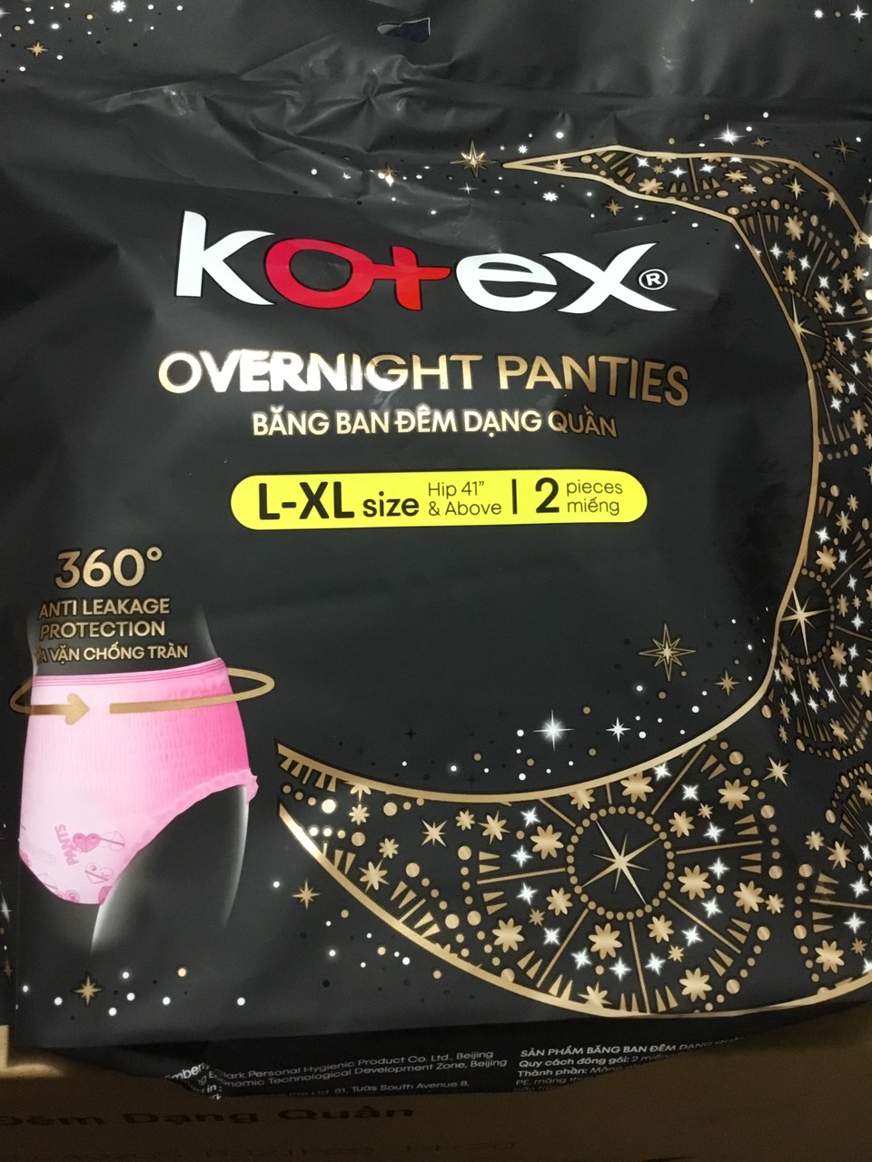 ✨1 Gói Băng Vệ Sinh Kotex đêm dạng quần vừa vặn chống tràn 360 size L-XL (2 miếng/gói)-HSD luôn mới