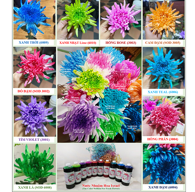 - BỘT NHUỘM MÀU HOA TƯƠI “CHUYÊN NGHIỆP” Nhằm đáp ứng Nhu cầu Giá Rẻ và chất lượng nhuộm "vừa phải" nhưng vẫn "đặc biệt chuyên nghiệp" dành nhuộm đổi màu hoa cắt cành theo