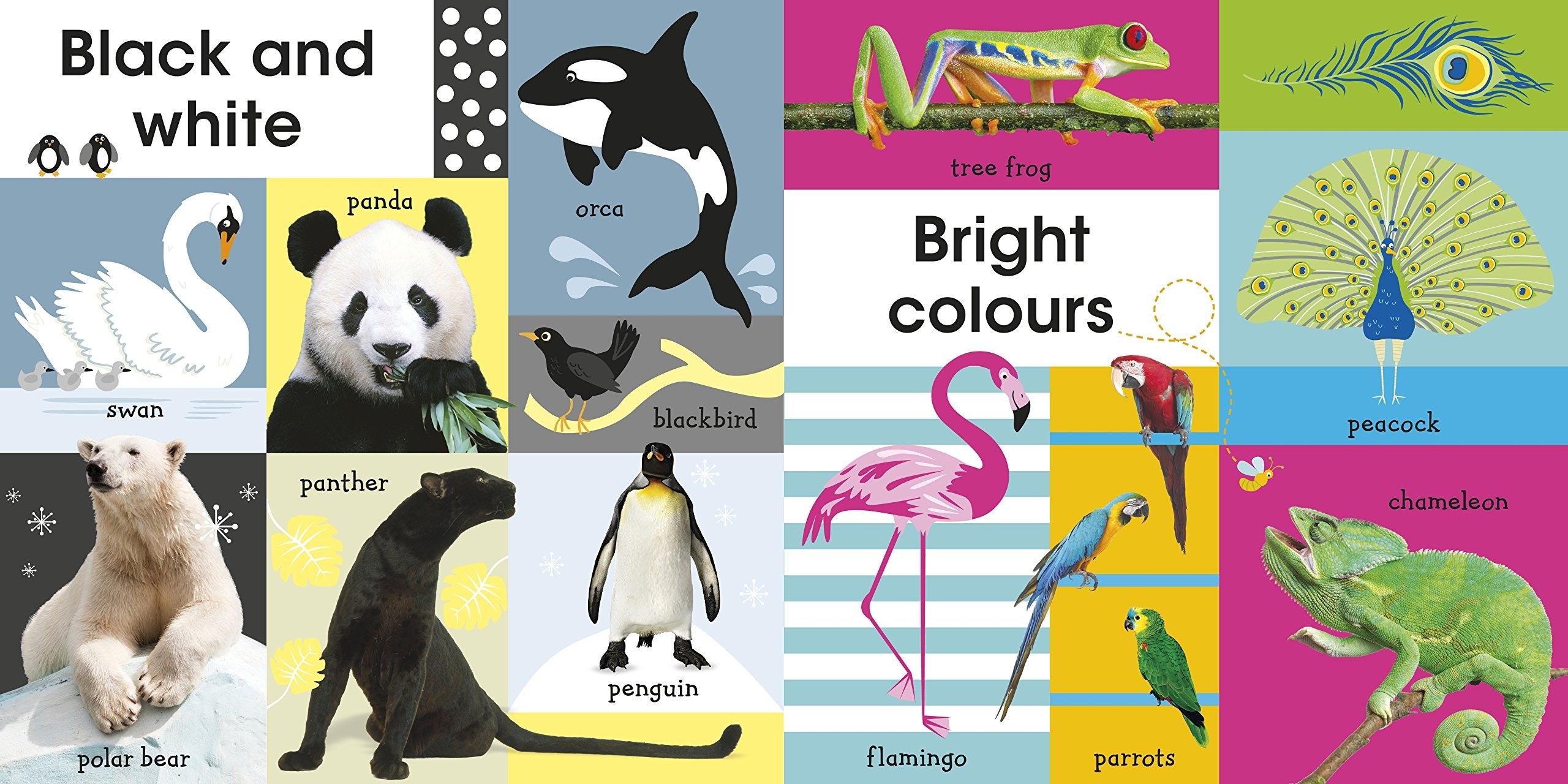 The ideal first animal picture book for babies and toddlers. Build little ones' vocabulary with 100 important animals, all with bold photographs and beautiful illustrations. Bright and colourful themed pages cover pets, farm animals, big beasts, cute baby animals, and animal colours and patterns. 100 First Animals is a large board book with a padded cover and makes an ideal first gift for babies. Crystal-clear photos show the wonder of the animal world, while engaging illustrations tell simple stories that stimulate talking, from a swan with her cygnets to a fish being chased by a smiley shark! Word labels encourage pointing, naming, and picture-and-word association. Cleverly designed to inform and entertain, 100 First Animals makes learning an exciting adventure for your baby.