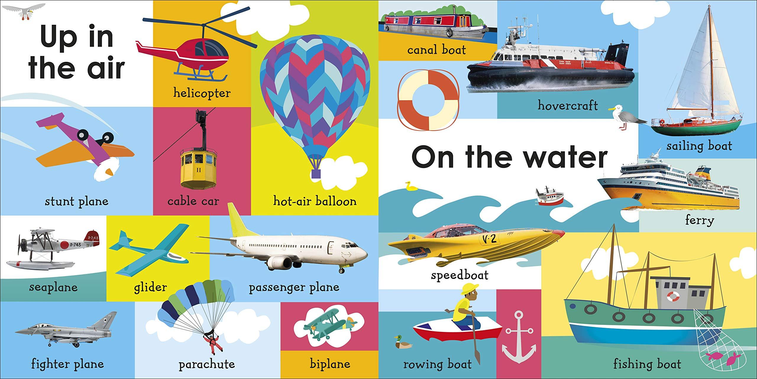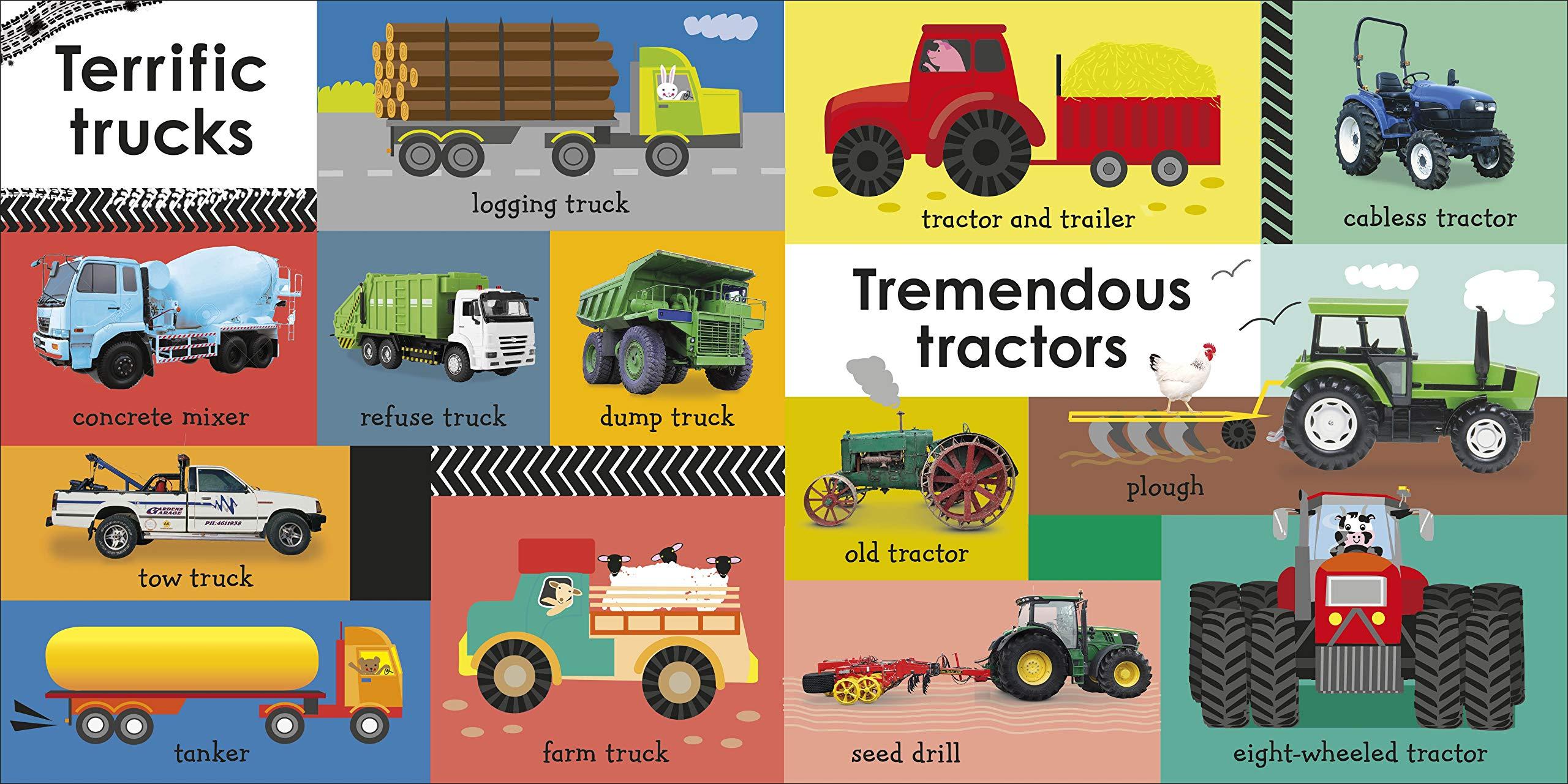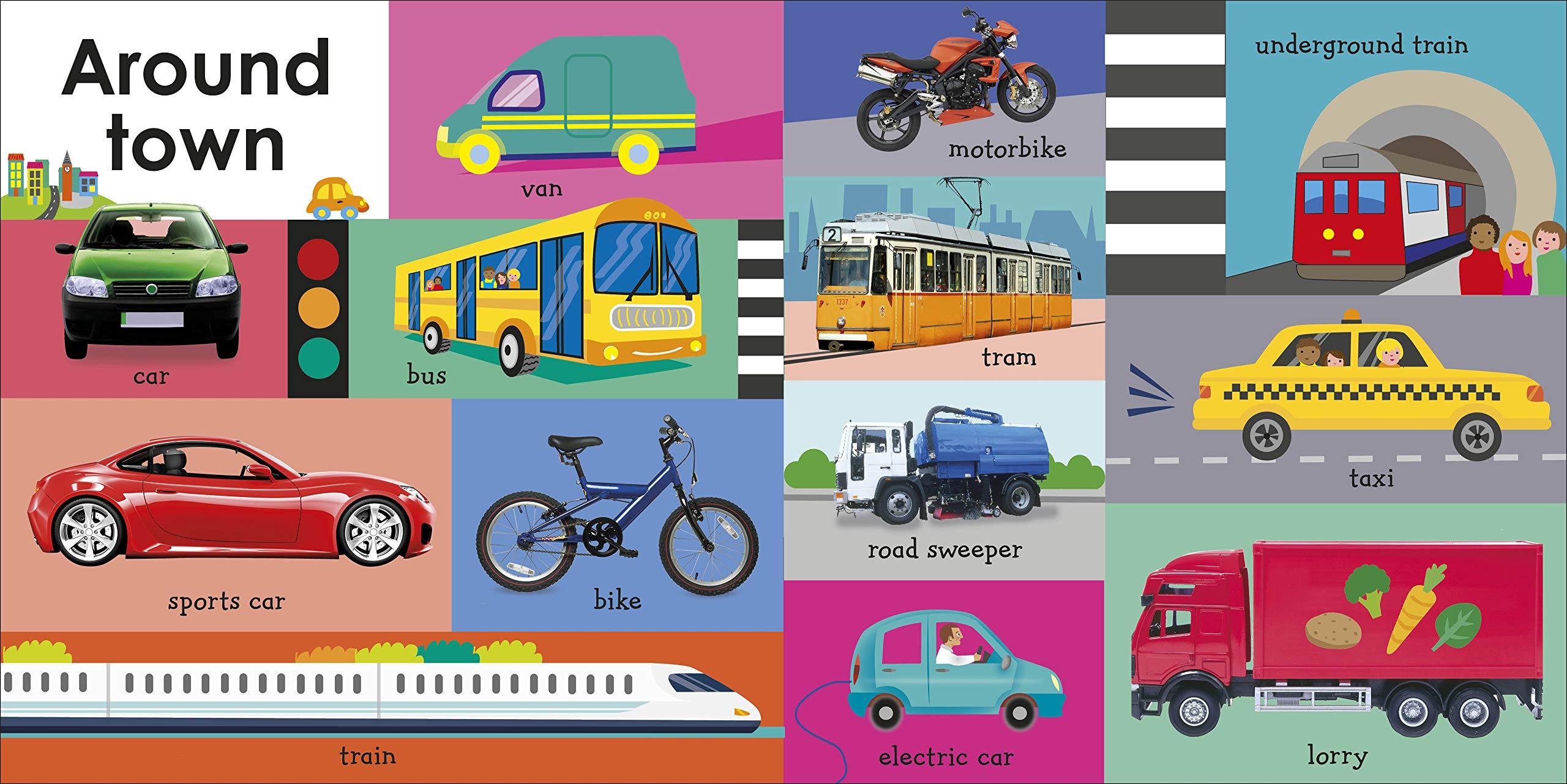 A fun-filled first introduction to transportation Jump aboard and point to the busy vehicles in this things that go baby book. Filled with cars, trucks, planes, boats, tractors, and diggers, it helps little ones learn first words and build vocabulary. Favourite vehicles are labelled on every page, and the exciting photos combined with fun illustrations provide lots to talk about, learn about, and smile about, making this colourful picture book great for sharing, and an attractive baby gift. Part of a beautiful, first word book series, which includes the award-winning 100 First Words and 100 First Animals, the big board book pages are toddler tough, and cover everything from cool cars, terrific trucks, and awesome fire engines, to vehicle colours and kids' own ride-on toys. There are even some entertaining make-believe things that go, such as a fantastic pirate ship and a magic broomstick.