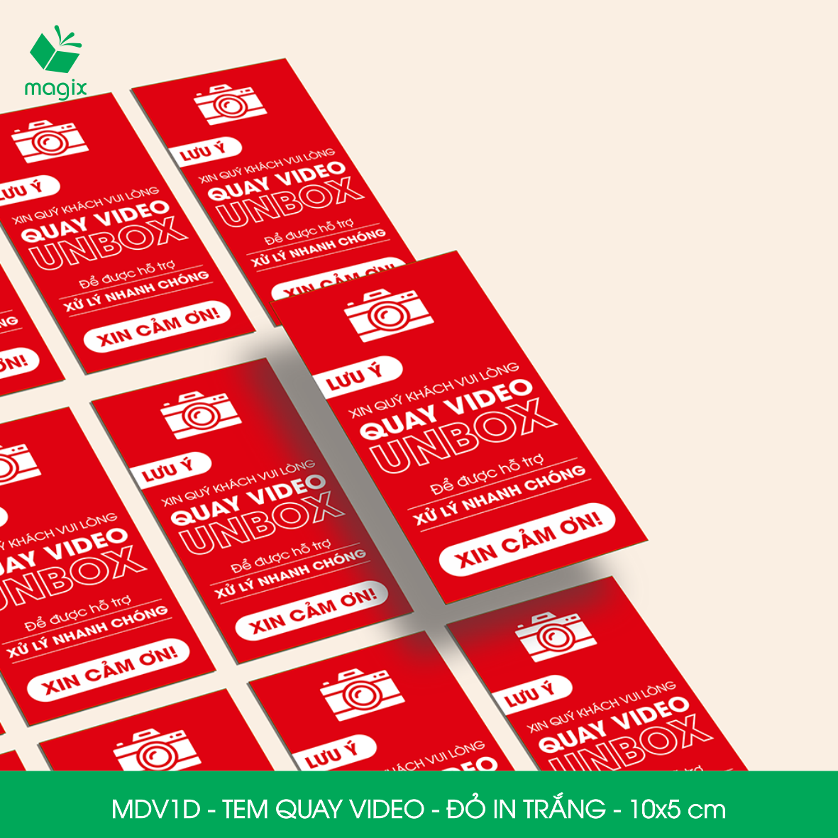 ✨100 Tem chú ý quay video trước khi mở hàng, decal dán hộp - 10x5 cm - Đỏ in trắng - MDV1D