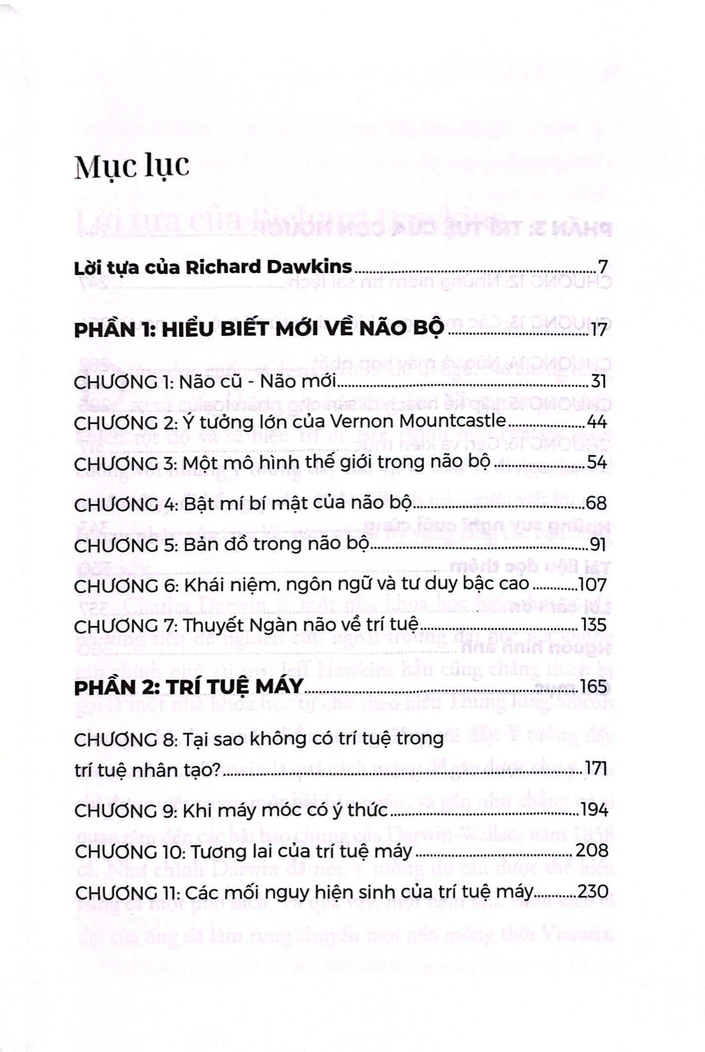 Với góc nhìn mới đầy thuyết phục này, Hawkins có thể đánh giá lại một số vấn đề hóc búa nhất của khoa học thần kinh, như tại sao cảm giác đau cần phải đau đớn mới hữu ích, làm sao chúng ta có thể hiểu rằng quan điểm của chúng ta về một vật thay đổi khi chúng ta di chuyển xung quanh nó và tại sao chúng ta có thể có ý thức nhưng các phần riêng lẻ của cơ thể chúng ta thì không.