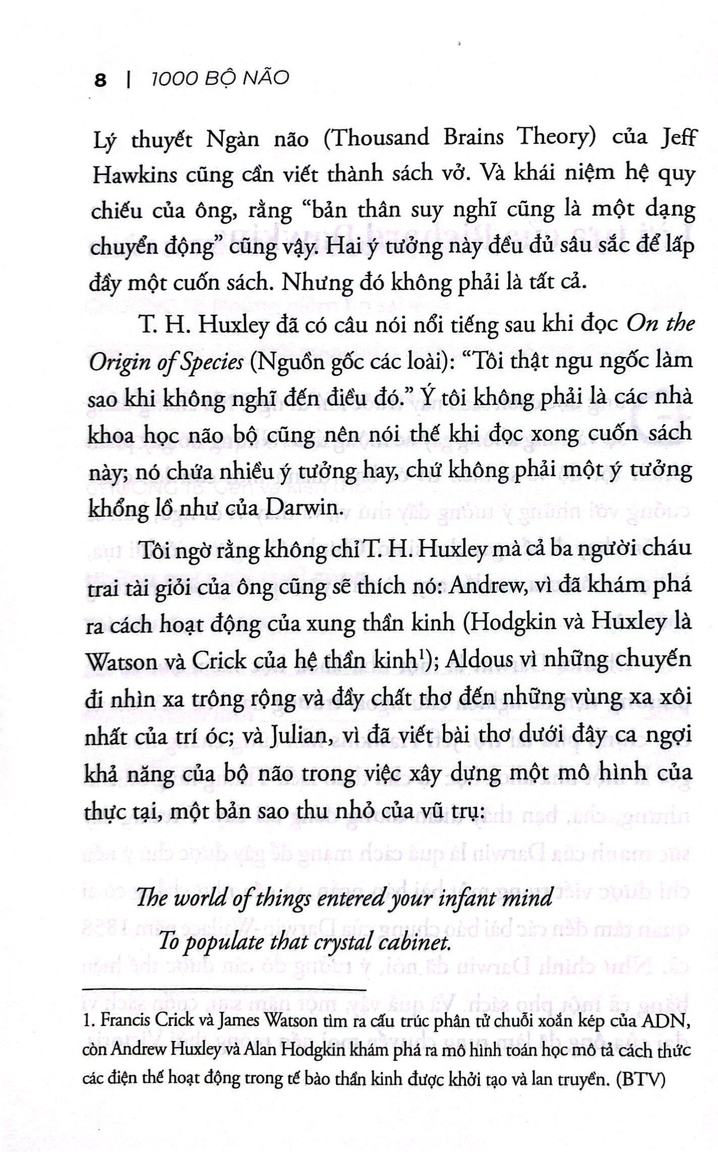 1000 Bộ Não - Lý Thuyết Mới Về Trí Tuệ Con Người Nội dung sách được chia thành 03 phần chính: - Phần 1: Hiểu biết mới về não bộ Dù đã có những tiến bộ vượt bậc trong nhiều năm qua, kh...
