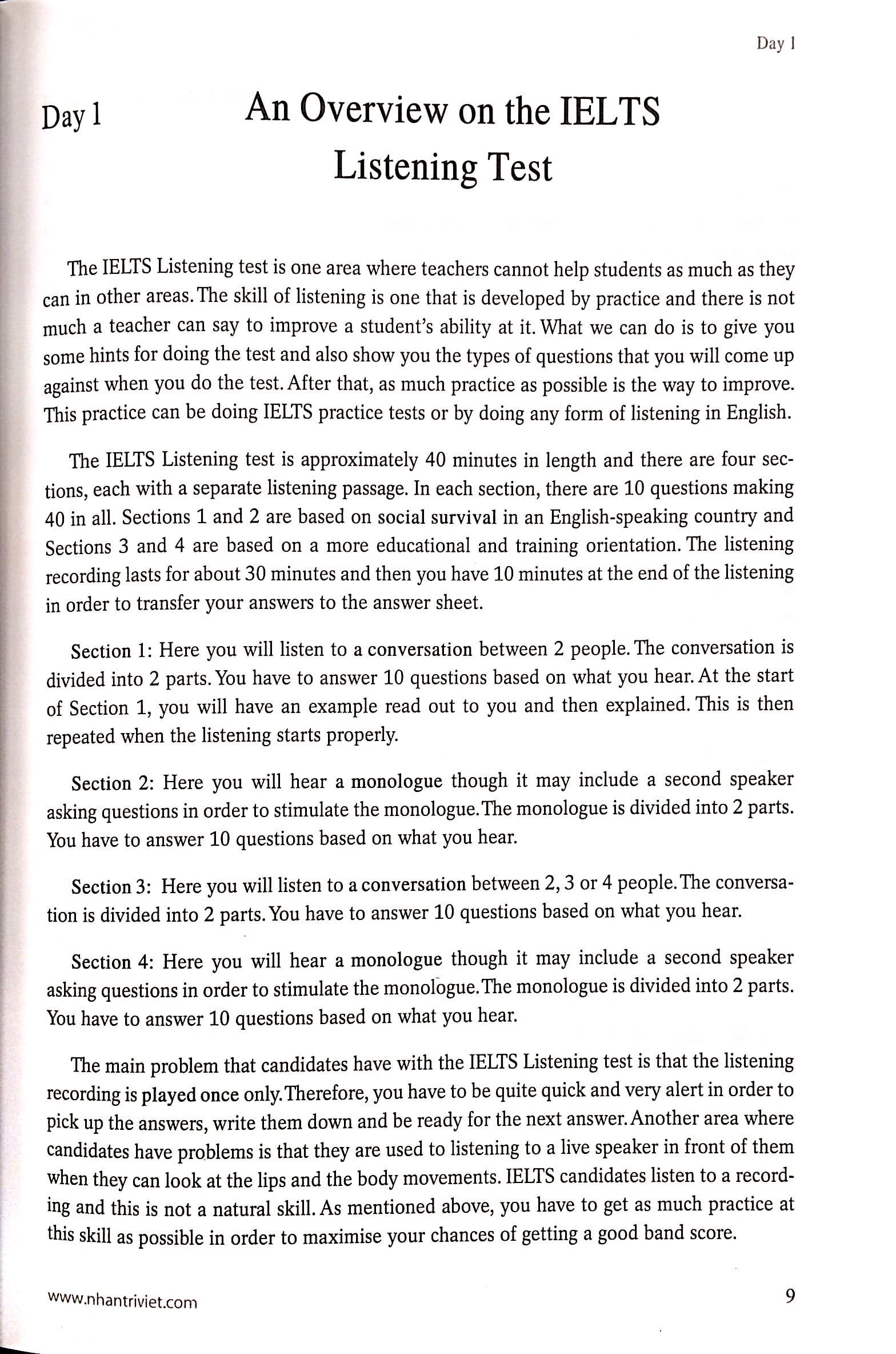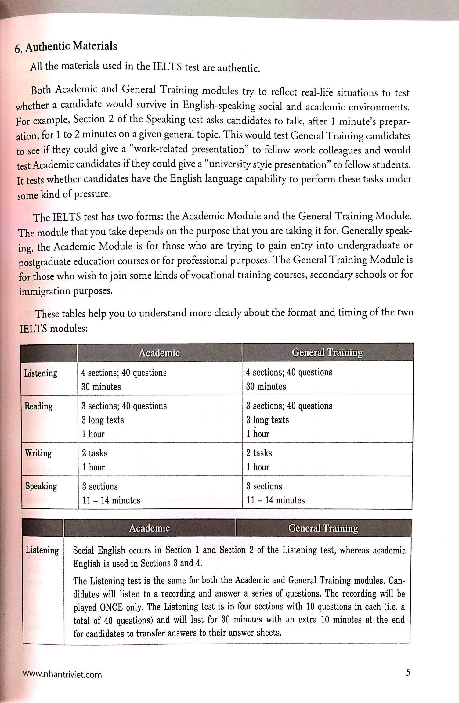 Cuốn sách giúp người học định hướng và làm quen với từng dạng bài của của từng kỹ năng trong một bài thi IELTS. Bên cạnh việc phân tích định dạng bài thi, cuốn