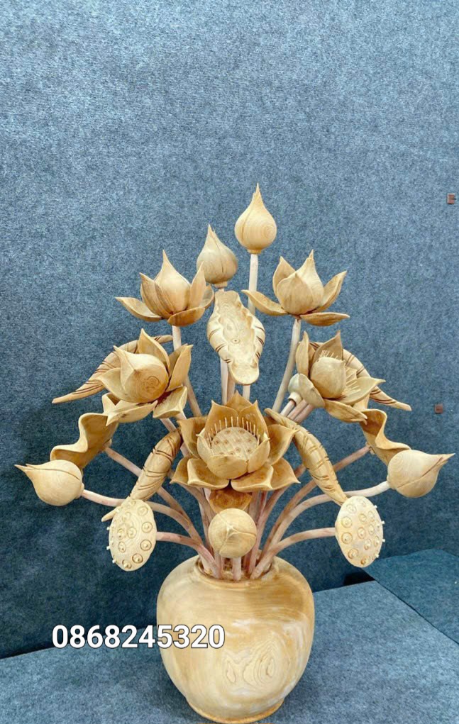 Bình Hoa Sen 21 Cành Gỗ Ngọc Am Thơm Nức Đẹp Giá Xưởng| Xưởng Tượng Gỗ Độc Đáo - 0938410333