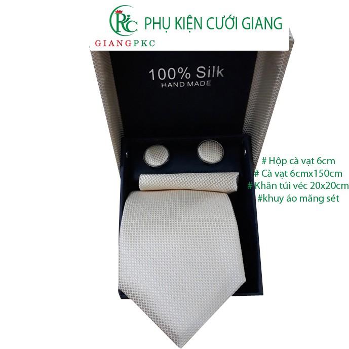 Cà vạt nơ chú rể 2020 GIANGPKC Cavat chú rể 6cm kèm nơ Bộ cavat nơ chú rể - hoa cài véc - khăn cài véc - nút măng sét Chất liệu vải gấm hình