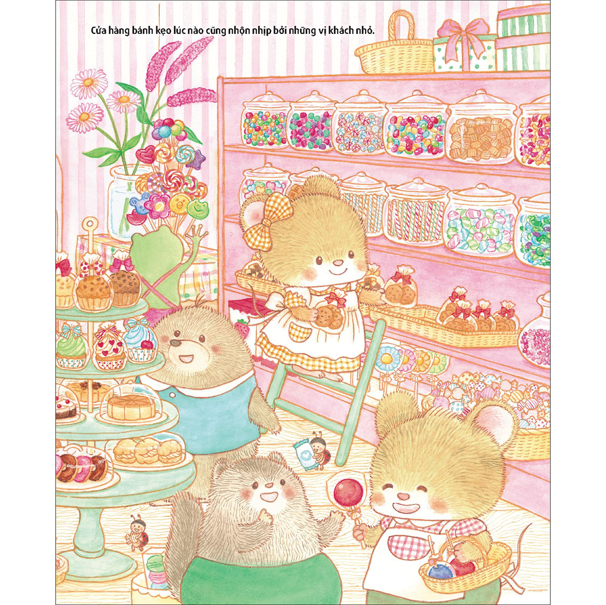 Hình ảnh sinh động: Cuốn sách được minh họa bằng những hình ảnh màu sắc tươi tắn, bắt mắt, giúp trẻ dễ dàng hình dung ra thế giới bánh kẹo đầy màu sắc.