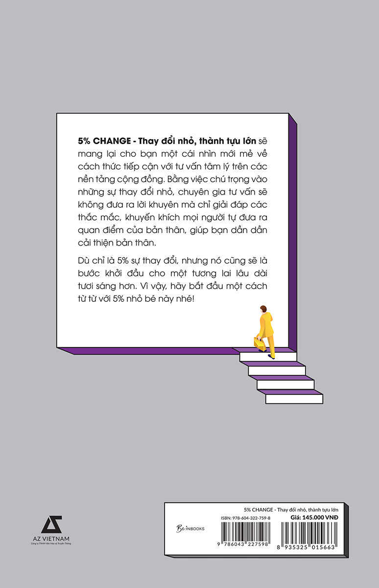 Mua tại TiktokGiới thiệu sách 5% Change - Thay Đổi Nhỏ, Thành Tựu Lớn 5% CHANGE - THAY ĐỔI NHỎ, THÀNH TỰU LỚN: “HƯỚNG DẪN TỰ TRỢ GIÚP” HỮU ÍCH CHO NHỮNG AI CÓ KHÚC MẮC TÂM LÝ CẦN ĐƯỢC GIẢI QUYẾT