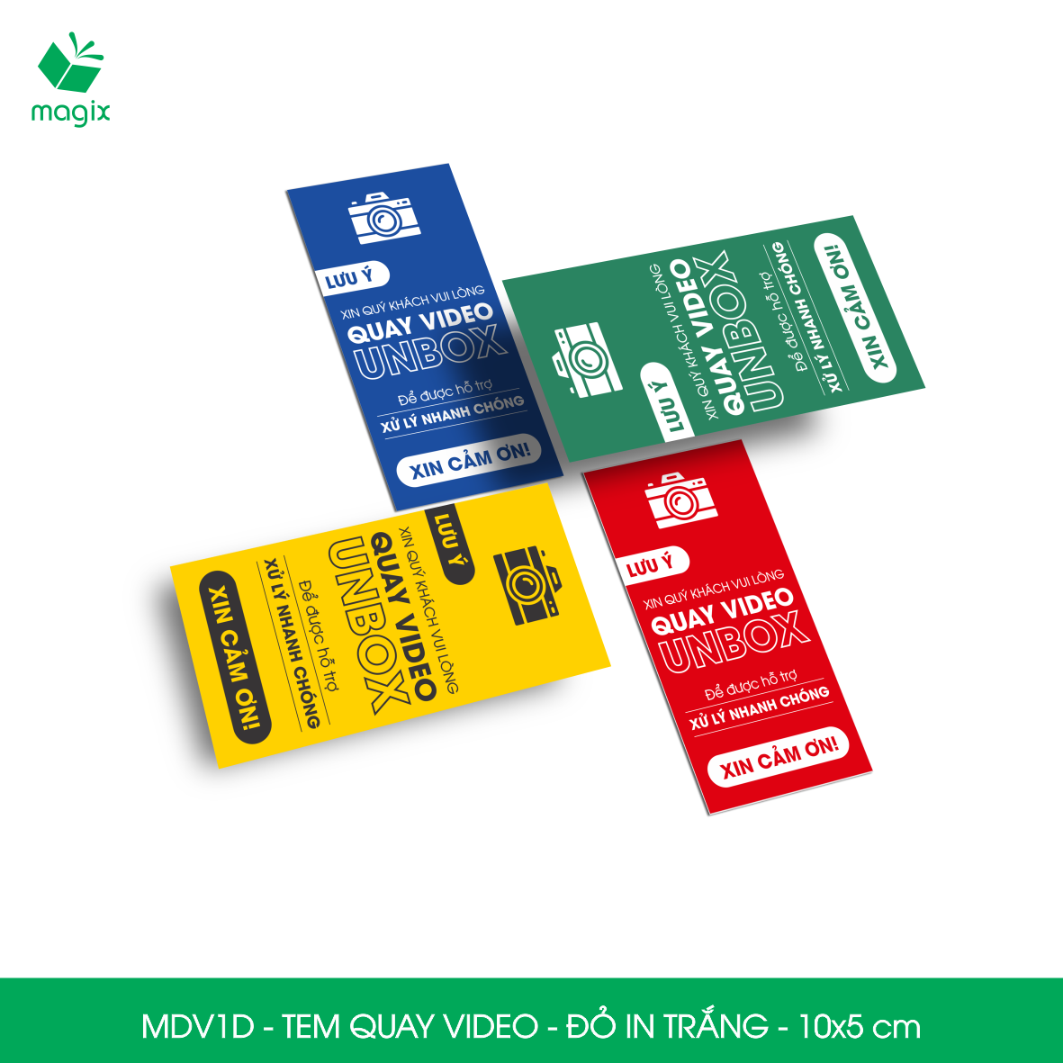 ✨500 Tem chú ý quay video trước khi mở hàng, decal dán hộp - 10x5 cm - Đỏ in trắng - MDV1D