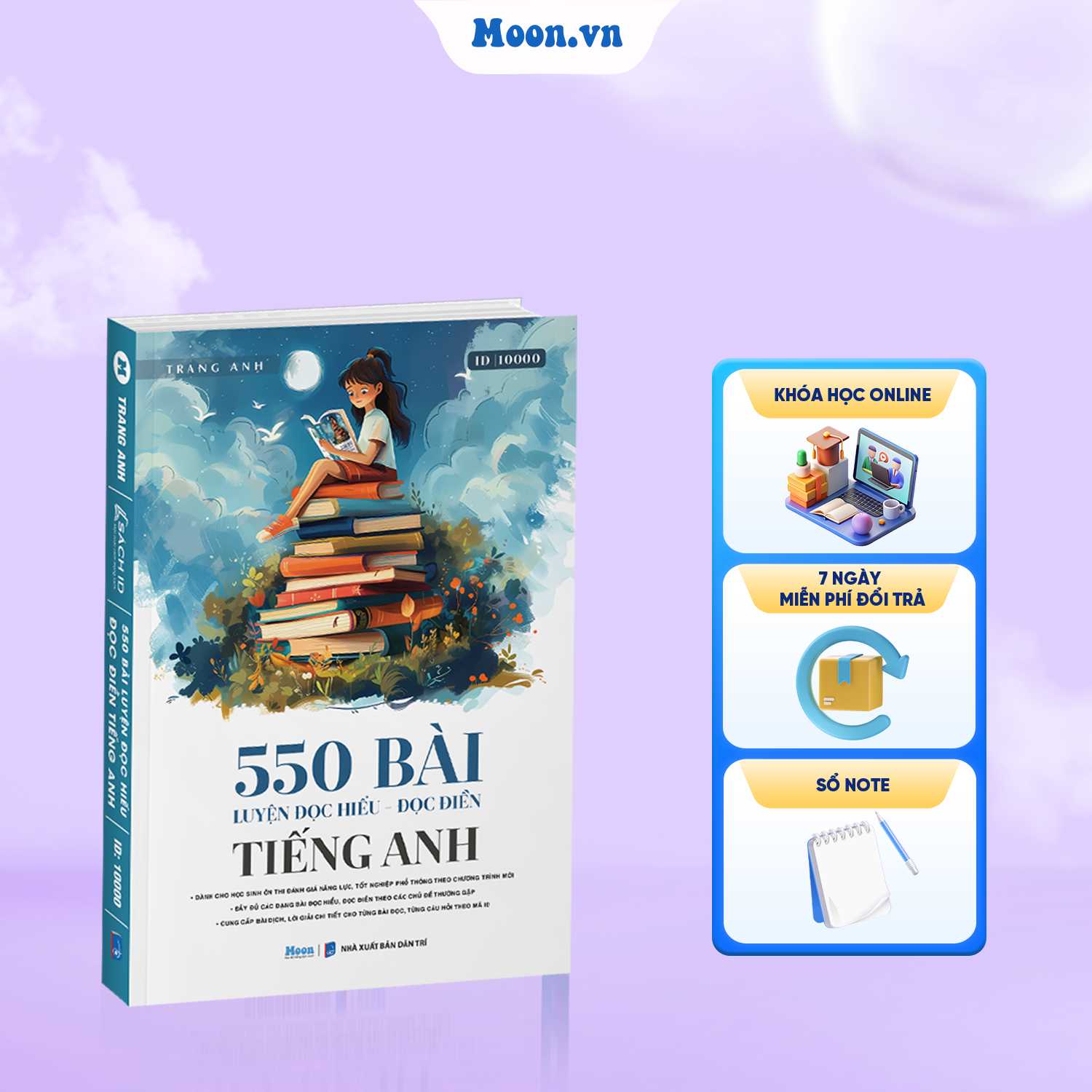 Sách tiếng anh cô Trang Anh: 550 bài đọc hiểu đọc điền ôn thi ĐGNL, TNPT Quốc Gia Moonbook