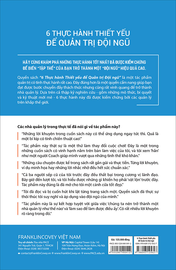 Quyển sách “6 Thực hành Thiết yếu để Quản trị Đội ngũ” là một tác phẩm quản trị có tính thực hành rất cao. Đây đúng hơn là một quyển cẩm nang giúp bạn đạt được bước chuyển đầy thách thức nhưng cũng rất vinh quang để trở thành nhà quản lý.