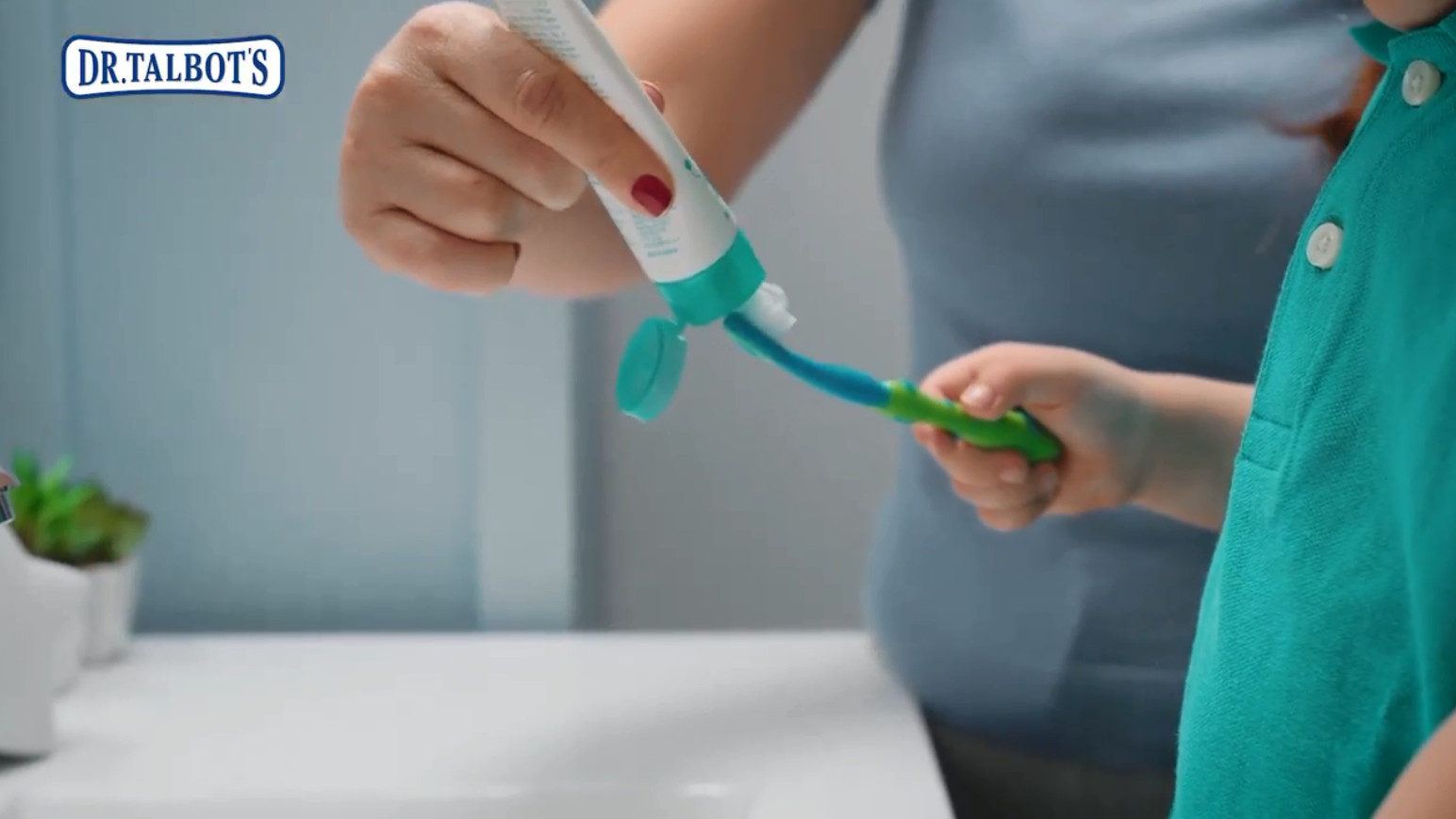 • Kem đánh răng Organic Nuby - Dr. Talbot's USA nuốt được, nhưng ba mẹ nên tập cho bé thói quen nhổ bọt kem đánh răng ra