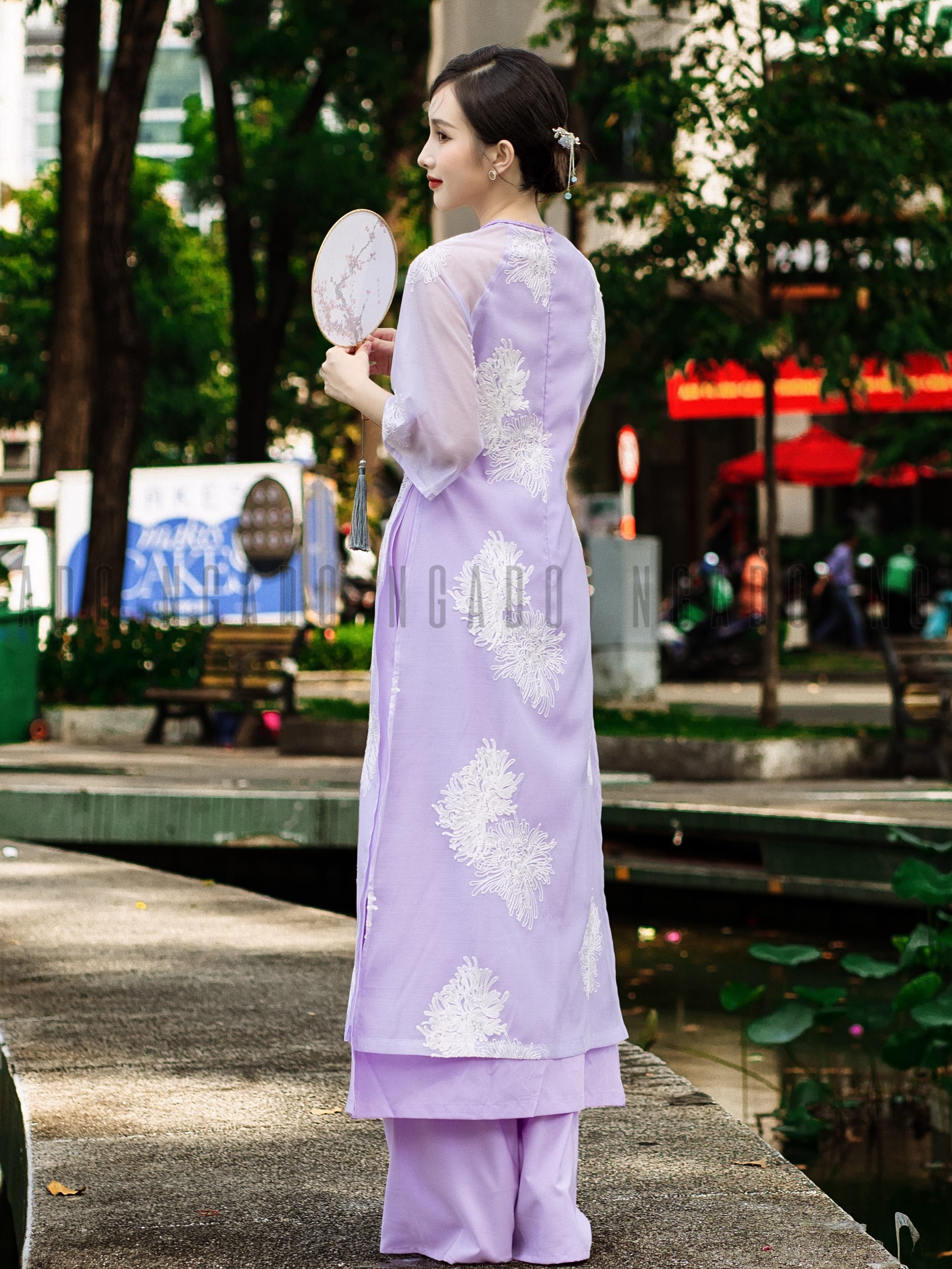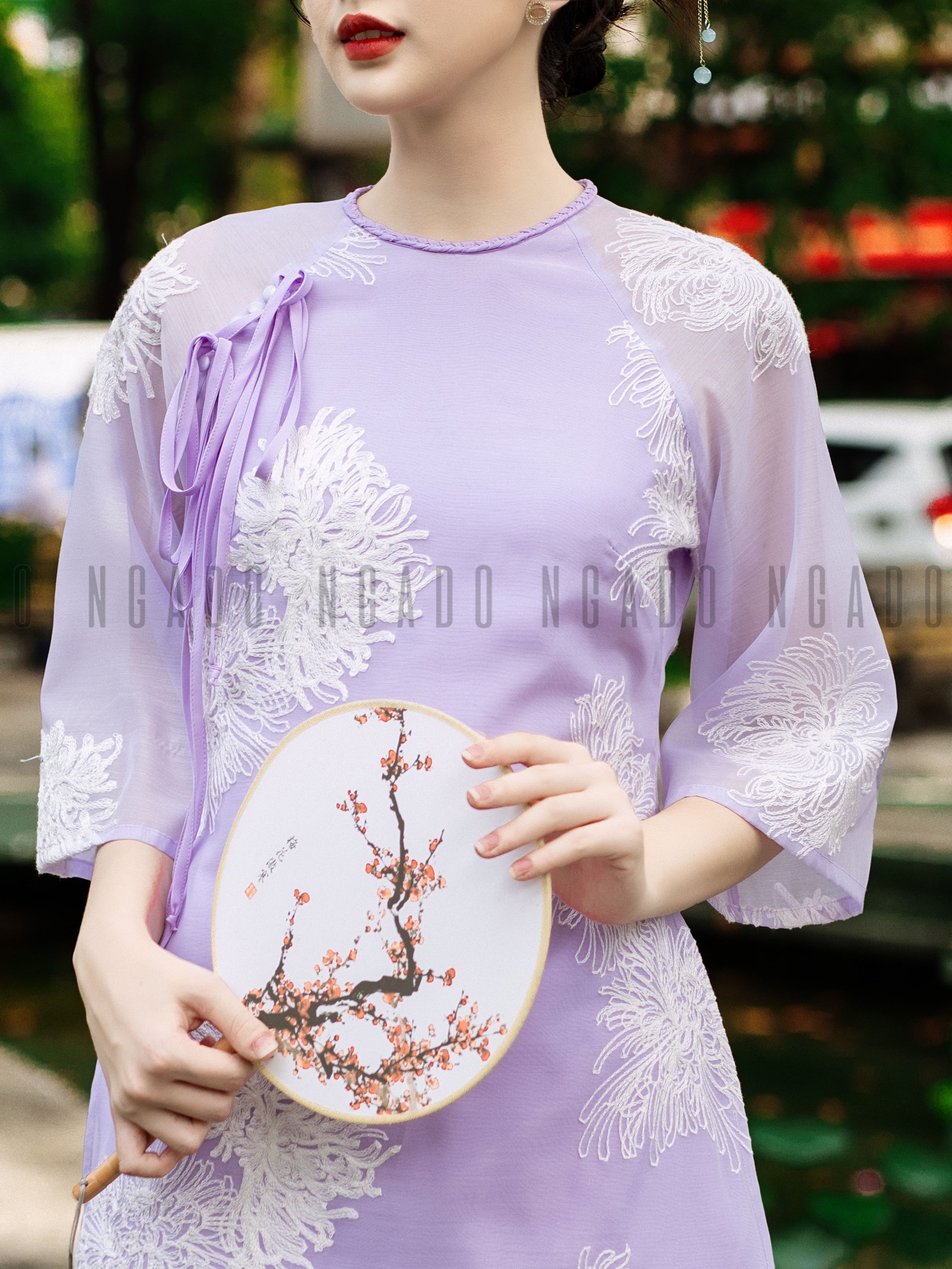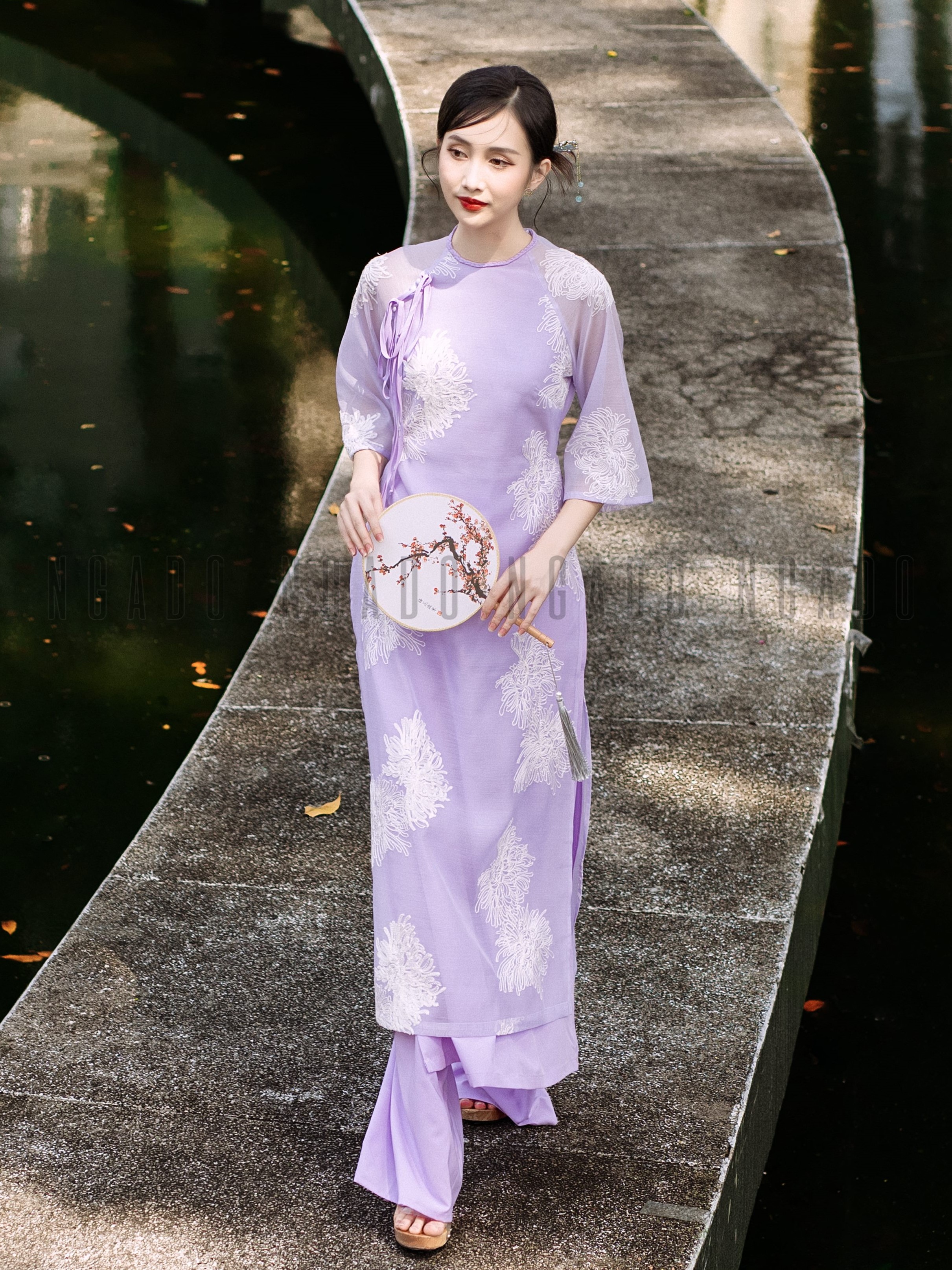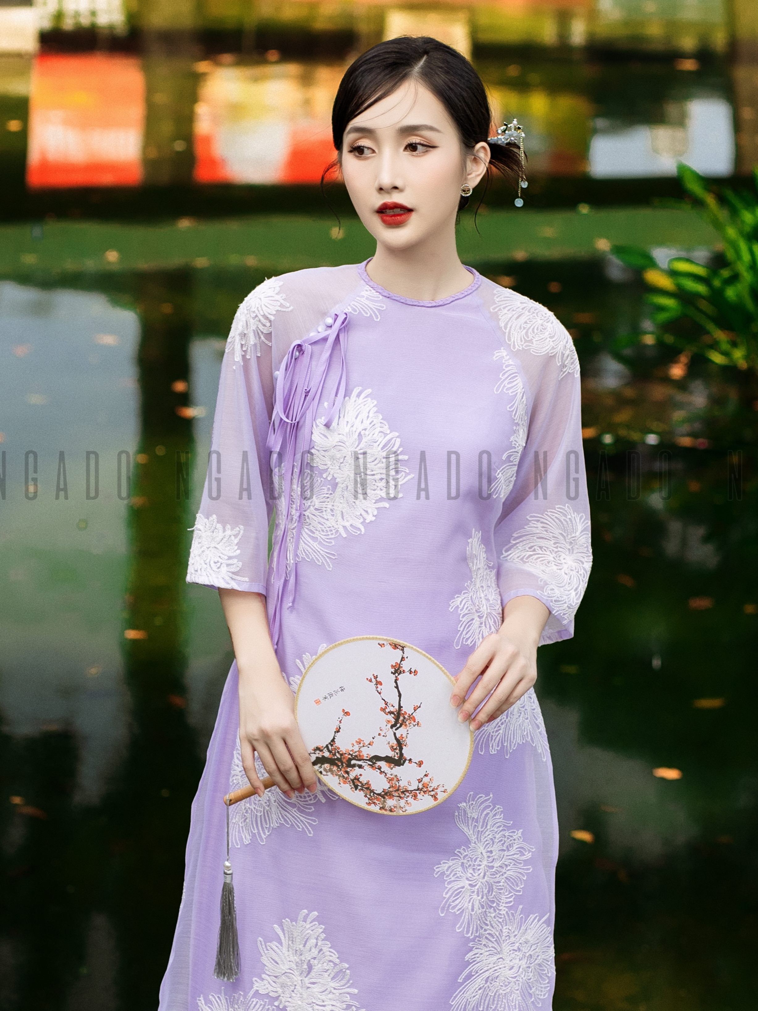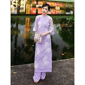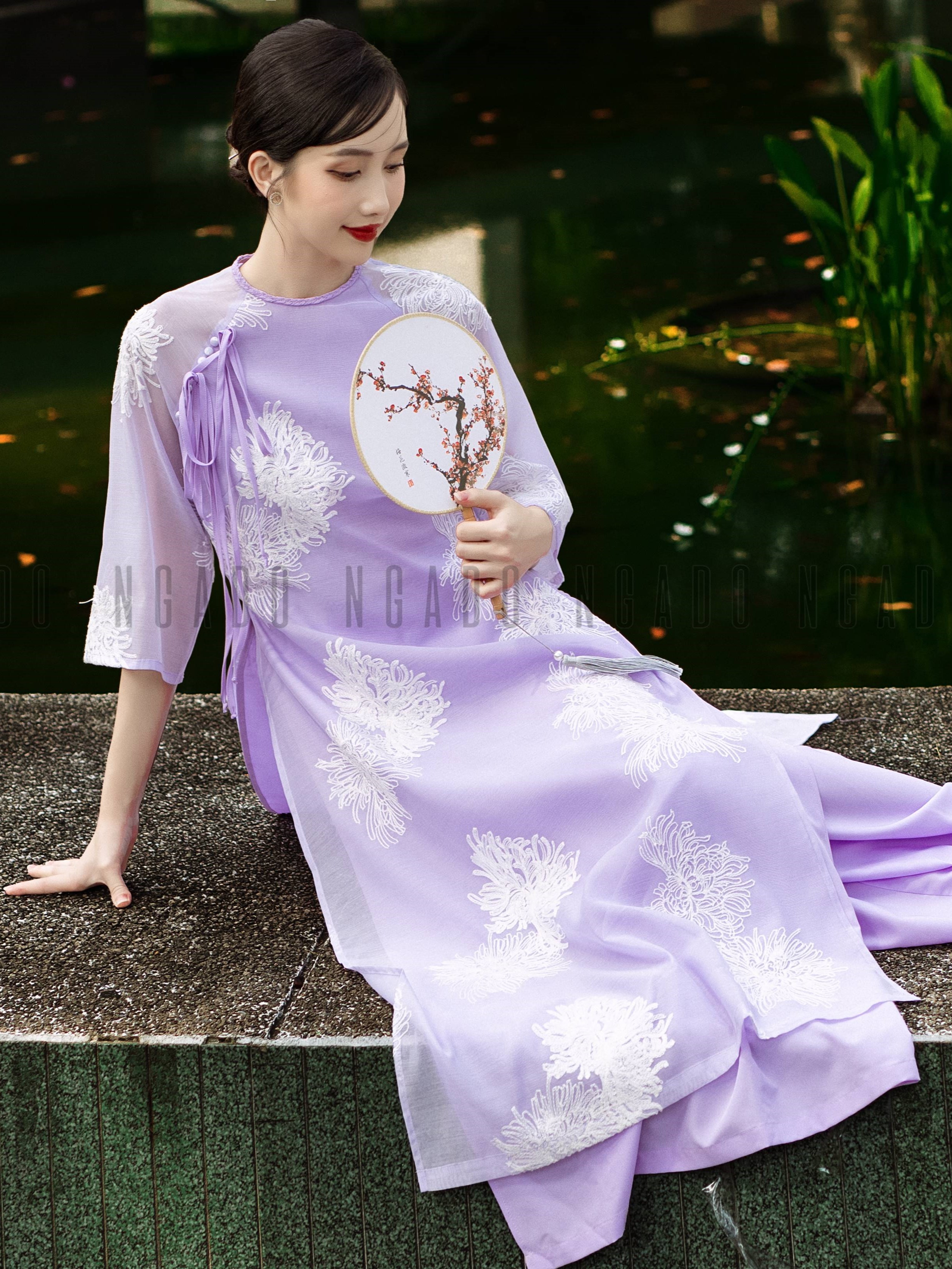 Mua tại Tiktokღ THÔNG TIN SẢN PHẨM: Tên sản phẩm: Áo dài Đinh Hương Màu sắc: Tím Chất liệu: Cotton thêu hoa Chi tiết sản phẩm: Áo dài, không kèm quần, không lót