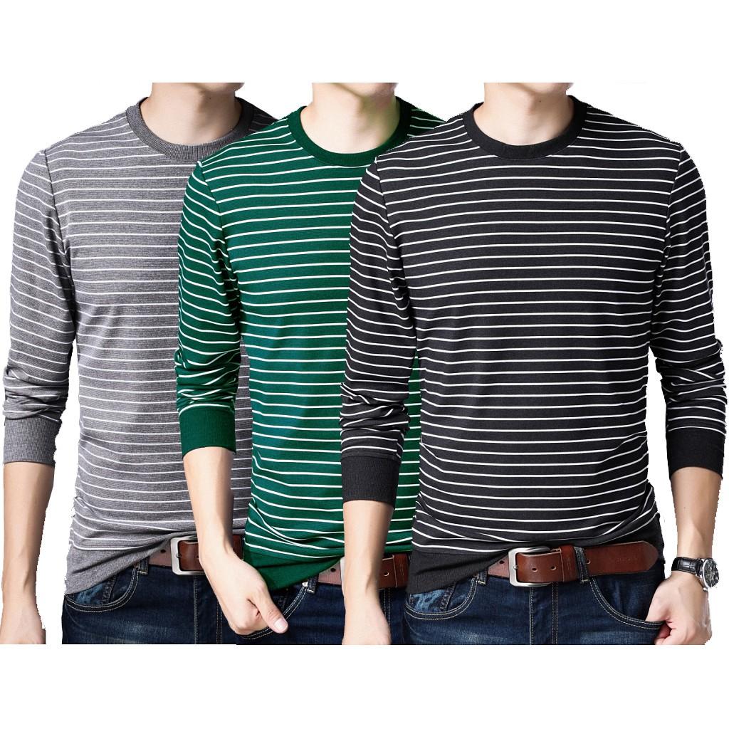 Áo thun sọc dài tay MS: ATD05 Chất liệu: thun cotton co giãn 4 chiều Màu sắc: 3 màu :Sọc Đen - Trắng Sọc Xám - Trắng Sọc Xanh - Trắng Size: M < 55kg,