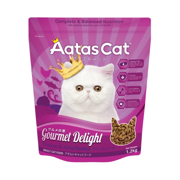 Aatas Cat Gourmet Delight – Chicken & Tuna Flavour. Thức ăn hạt cân bằng & hoàn hảo cho mèo trưởng thành.