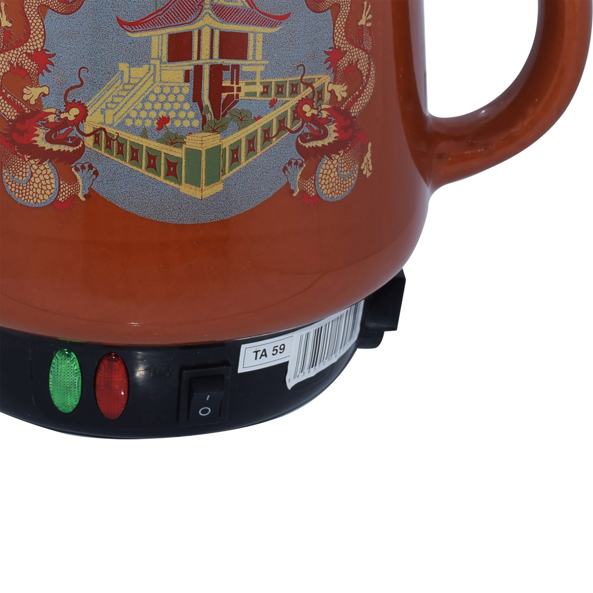 Dung tích: 2.8 L- Công suất: 450W- Thân ấm thiết kế với hoa văn ông già - củ sâm- Nguồn gốc sứ từ làng gốm Bát Tràng nổi tiếng- Chất liệu gốm được nung ở