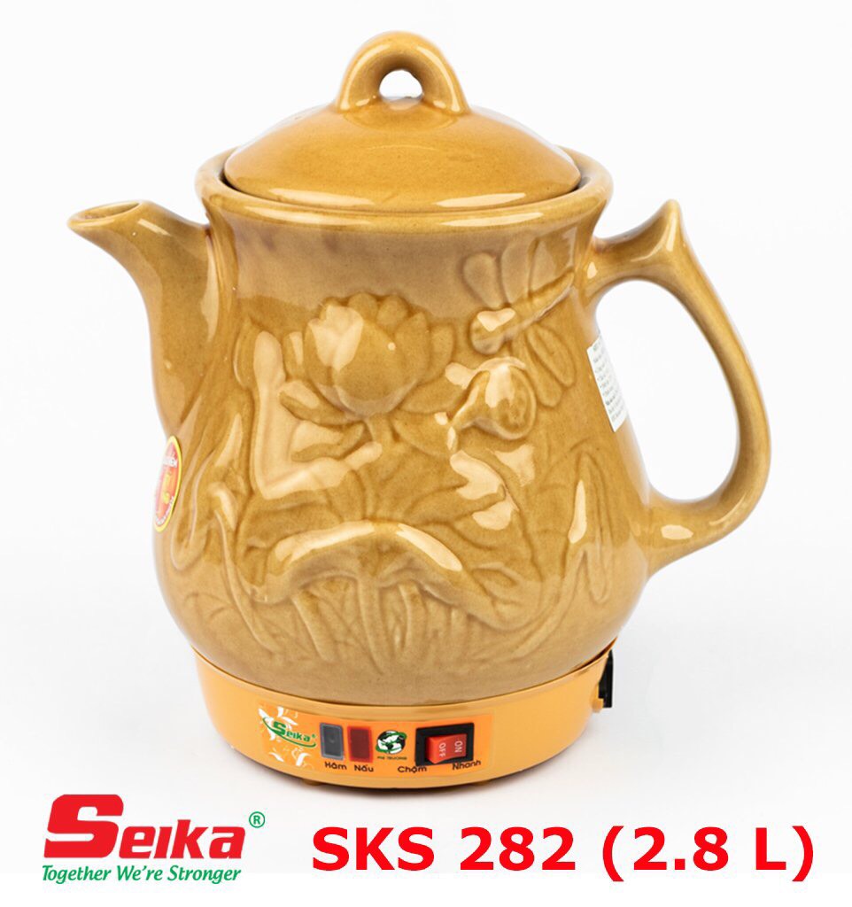 Dung tích 2.8L Ấm Sắc Thuốc Seika 2.8L - SKS282 (Gốm Sứ Bình Dương) được làm từ gốm sứ Bình Dương loại 2.8L có sức chịu nhiệt cao, bề mặt láng mịn dễ dàng vệ