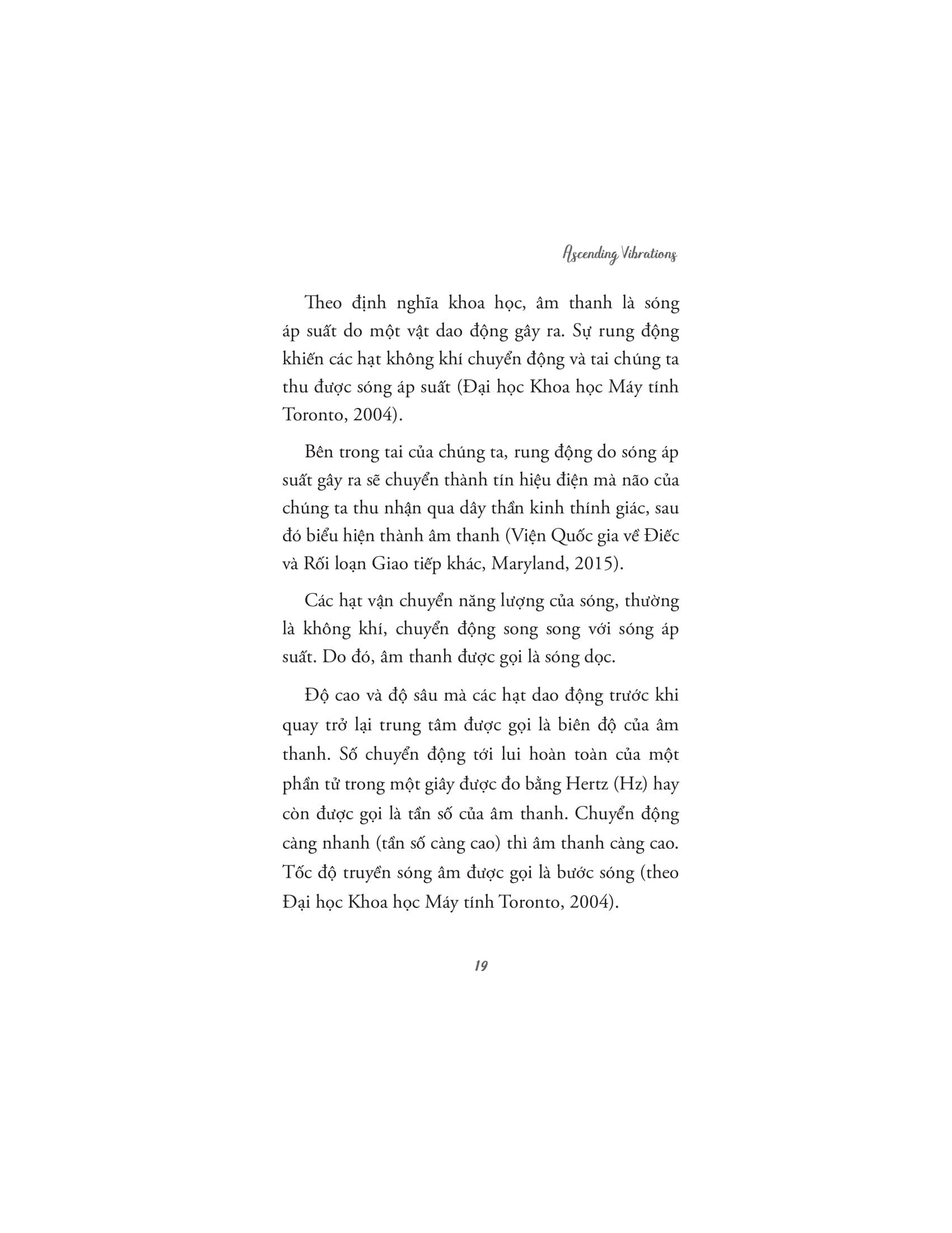 Tác giả dẫn dắt người đọc qua những ứng dụng khoa học, tâm linh và siêu hình của âm thanh, giải thích cách mà các liệu pháp âm thanh cổ xưa đã được sử dụng trong nhiều nền văn hóa khác nhau để chữa lành và cải thiện sức khỏe. Âm thanh không chỉ có khả năng tác động đến cảm xúc, mà còn có thể ảnh hưởng tích cực đến hệ thần kinh, hệ miễn dịch, và thậm chí là các luân xa, trung tâm năng lượng trong cơ thể con người. Với nhiều kỹ thuật và phương pháp trị liệu âm thanh khác nhau, những liệu pháp này giúp cơ thể thư giãn, giảm căng thẳng, loại bỏ tắc nghẽn năng lượng và khôi phục lại trạng thái cân bằng tự nhiên.