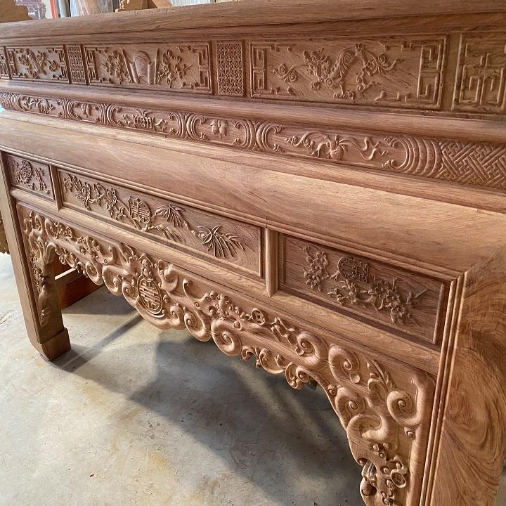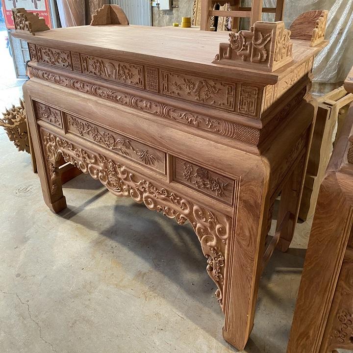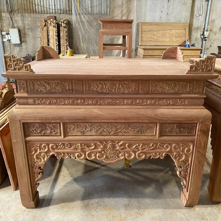 Mẫu Bàn Thờ Án Gian Đẹp Dày Dặn Gỗ Hương Đá - Nghiệm Thu Mộc Bàn Thờ Gia Tiên Ngũ Phúc Kim Tiền