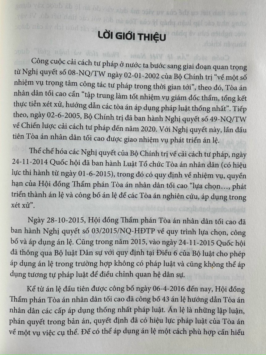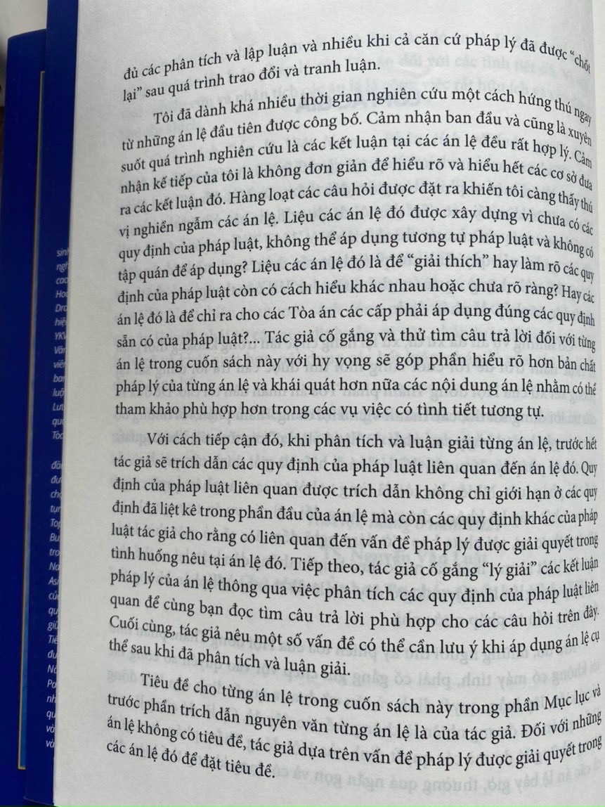 Cuốn sách “Án Lệ Việt Nam – Phân Tích Và Luận Giải Từ Án Lệ Số 01 Đến Án Lệ Số 43” được biên soạn bởi Luật sư, TS Lưu Tiến Dũng, người đã có hơn ba mươi năm hành nghề luật và đã có thời gian công tác tại Ba Thư ký Chánh án Tòa án nhân dân tối cao, là Thư ký một số phiên tòa giám đốc thẩm của Hội đồng Thẩm phán Tòa án nhân dân tối cao – Cơ quan xét xử cao nhất và có thẩm quyền lựa chọn án lệ, hiện là thành viên Công ty Luật YKVN – một trong những công ty luật hàng đầu của Việt Nam, cuốn sách biên soạn một cách công phu với cách tiếp cận phân tích các án lệ xuất phát từ các quy định sẵn có của pháp luật nhằm góp phần hiểu rõ và khái quát hơn nội dung các kết luận pháp lý của các án lệ đã được công bố.