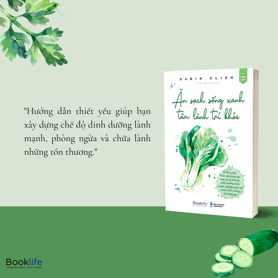 Trong Ăn sạch sống xanh, tâm lành trí khỏe, Darin Olien cung cấp cho chúng ta một cách suy nghĩ hoàn toàn mới về sức khỏe và hạnh phúc bằng cách xác định các động lực sống: Dinh dưỡng chất lượng, Hydrat hóa, Giải độc, Oxy hóa và Kiềm hóa, cho chúng ta biết cách duy trì cân nặng hợp lý, ngăn ngừa ngay cả những căn bệnh nghiêm trọng nhất. Chúng ta luôn được dạy phải xem máu, xương, da, các cơ quan, các nơ-ron thần kinh và tất cả mọi thứ khác một cách riêng rẽ và mỗi bộ phận lại mang đến những vấn đề hay mối lo ngại không giống nhau. Nhưng sự thật là, mỗi một bộ phận nhỏ nhất bên trong cơ thể người, mọi phân tử và tế bào đều phản ứng với năm sinh lực của cuộc sống kể trên. Việc ta cần làm chỉ là làm sao nắm bắt những yêu cầu đó - năm sinh lực của cuộc sống. Và sau đó, ta phải cố gắng hết sức để hoàn thành.