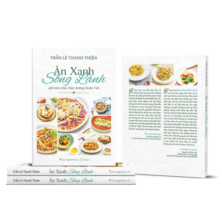 Từ hạt tiêu xanh Phú Quốc the cay, củ khoai mỡ Long An dẻo ngon, trái thanh long Bình Thuận đỏ thắm, cơm dừa non Bến Tre béo ngậy, tép tỏi đen Lý Sơn giàu dược tính, hạt muối Bạc Liêu đậm đà, lát khoai deo Quảng Bình gợi nhớ, vị tương bần Hưng Yên dậy hương… tác giả Trần Lê Thanh Thiện đã khéo léo kết hợp hài hòa hương – sắc – vị trong từng món ăn để tạo nên bức tranh ẩm thực chay hài hòa và tịnh lạc trong Ăn Xanh Sống Lành – 33 món chay thực dưỡng thuần Việt.