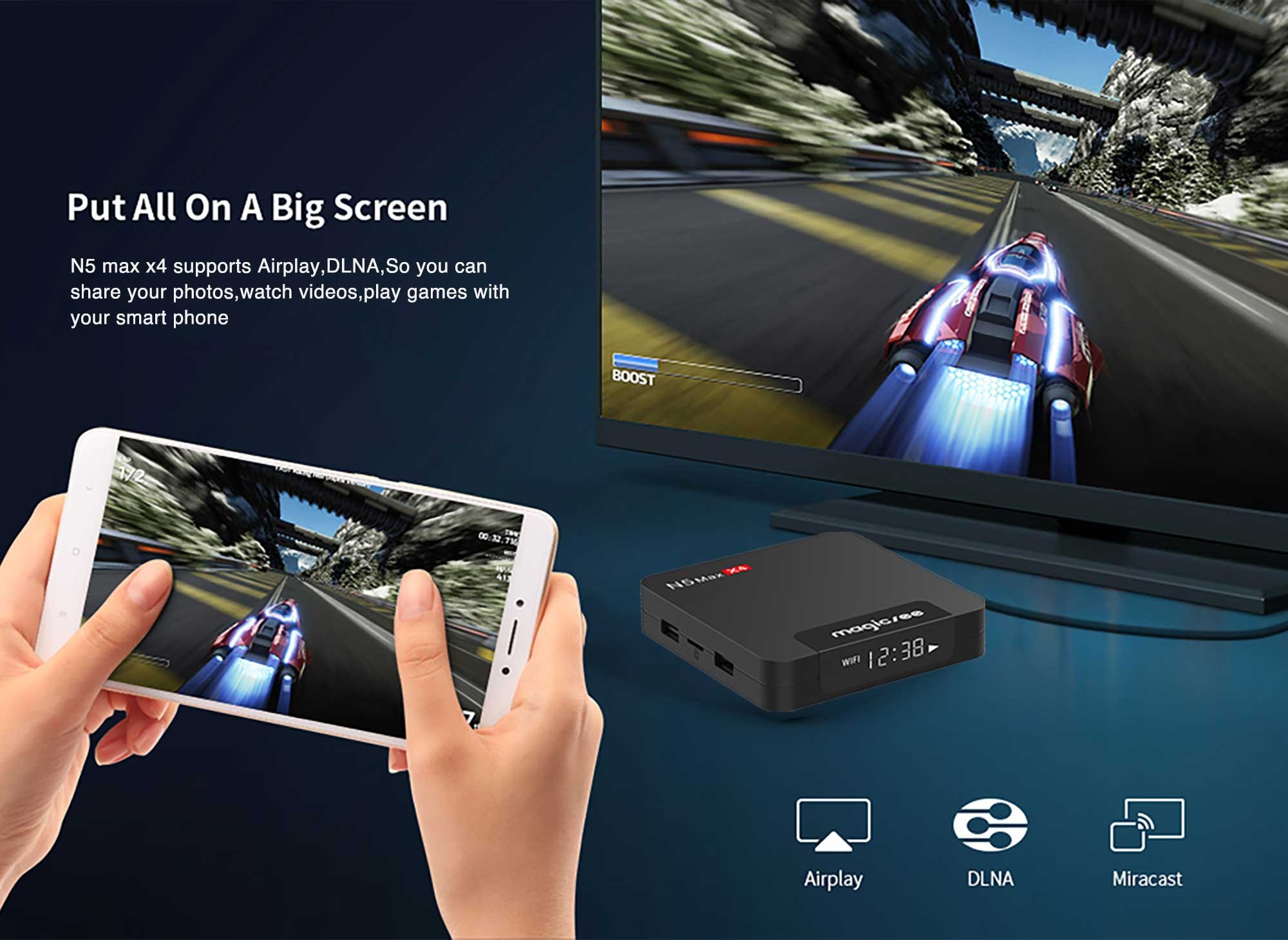 - Có thể cắm Amply , Hát Karaoke, Thay thế đầu PS kết nối loa không dây Thiết bị n5 max x4 xem phim Full HD cõ hỗ trợ xem phim 4K cho các dòng TV cao cấp n5 max x4 được thiết kế không khác gì một chiếc điện thoại cao cấp ngoại trừ tính năng nge và gọi. Các bạn có thể vào mạng, lướt web, xem phim, xem bóng đá, đọc tin tức. Thiết bị TV n5 max x4 sẽ thay thế và bổ trợ cho các dòng TV đã là Smart Tv hoặc chỉ là TV thông thường. Đặc biết các bạn có thể thoải mái truy cập vào kho ứng dụng CH PAY của Google tải bất kỳ ứng dụng nào muốn vè TV nhà bạn. Google tải bất kỳ ứng dụng nào muốn vè TV nhà bạn. Ngoài ra thiết bị có chức năng điều khiển tìm kiếm giọng nói thế hệ mới có đèn nền phím bấm siêu mền Ngoài ra, chuột bay Air Mouse có dải tần số 2,4 ~ 2.4835GHz cùng cảm biến chuyển động điều khiển bằng cách lắc chuột trên không để điều khiển tiện lợi hơn rất nhiều. Với 5 phím học lệnh cơ bản bạn có thể sử dụng để thay thế những chiếc Remote khác như điều khiển tivi, android tivi box, đầu DVD, Hdplayer, khá thuận tiện, tất cả sẽ dùng chung một chiếc điều khiển Air mouse pro có mic voice