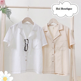Áo sơ mi cổ sen tay ngắn xinh xắn Mô tả Size S: sản phẩm vòng eo rộng 64cm - 66cm, vòng ngực rộng 84cm-86cm, vòng mông rộng 86cm-88cm Size M: sản phẩm vòng eo
