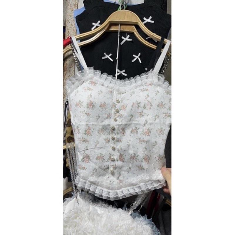 ✨Áo 2s hai dây khuy ngọc phối ren có đệm ngực