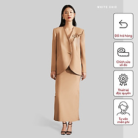 ✨Áo blazer nữ vạt buông tròn đính kèm hoa cài thủ công OLIVE thiết kế cao cấp WHITE CHIC