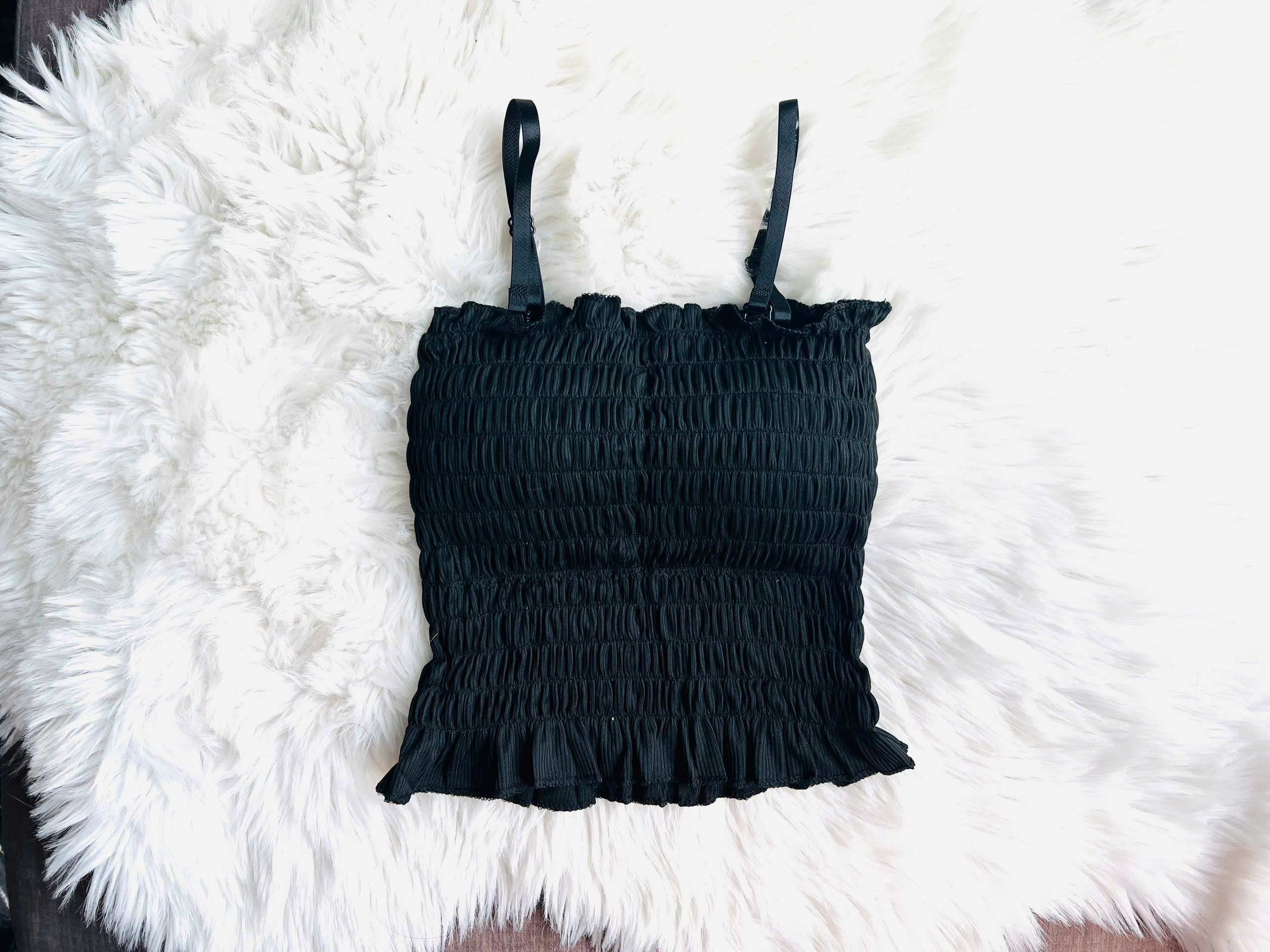 - Màu sắc : Kem / Đen - Chất liệu : Thun gân - Đặc tính : Co giãn tốt, thoáng mát - Lưu ý giặt ủi : Giặt tay/ máy. - Size : S / M STT CHI TIẾT ĐO / SIZE S M 1 Dài áo 35.5 37.5 2 Ngang ngực 66 70 3 Ngang lai áo 70 74 4 Dây áo 24 24 LƯU Ý: + Bảng size chart chỉ mang tính chất tham khảo, tùy thuộc vào số đo cơ thể mỗi người và chất liệu vải khác nhau sẽ có sự chênh lệch nhất định! + Nếu có bất kì khiếu nại cần Dottie hỗ trợ về sản phẩm, khi mở sản phẩm bạn vui lòng quay lại video quá trình mở sản phẩm để được đảm bảo 100% đổi lại sản phẩm mới nếu Dottie giao bị lỗi. + Bạn nhận được sản phẩm, đánh giá Dottie để hưởng thêm nhiều ưu đãi cho lần mua tiếp theo ạ QUY ĐỊNH ĐỔI TRẢ Thời gian • Thời hạn cho đổi - sửa sản phẩm: Chỉ áp dụng đổi size trong vòng 15 NGÀY đối với tất cả sản phẩm nguyên giá dành cho khách hàng mua thông qua các kênh bán hàng online. Dottie không hỗ trợ đổi trả các đơn hàng mua trong chương trình sale, mã giảm giá. Điều kiện • Hóa đơn còn nguyên vẹn,không chấp vá hoặc tẩy xóa. • Còn trong bao bì, có dán mã sản phẩm của Dottie.