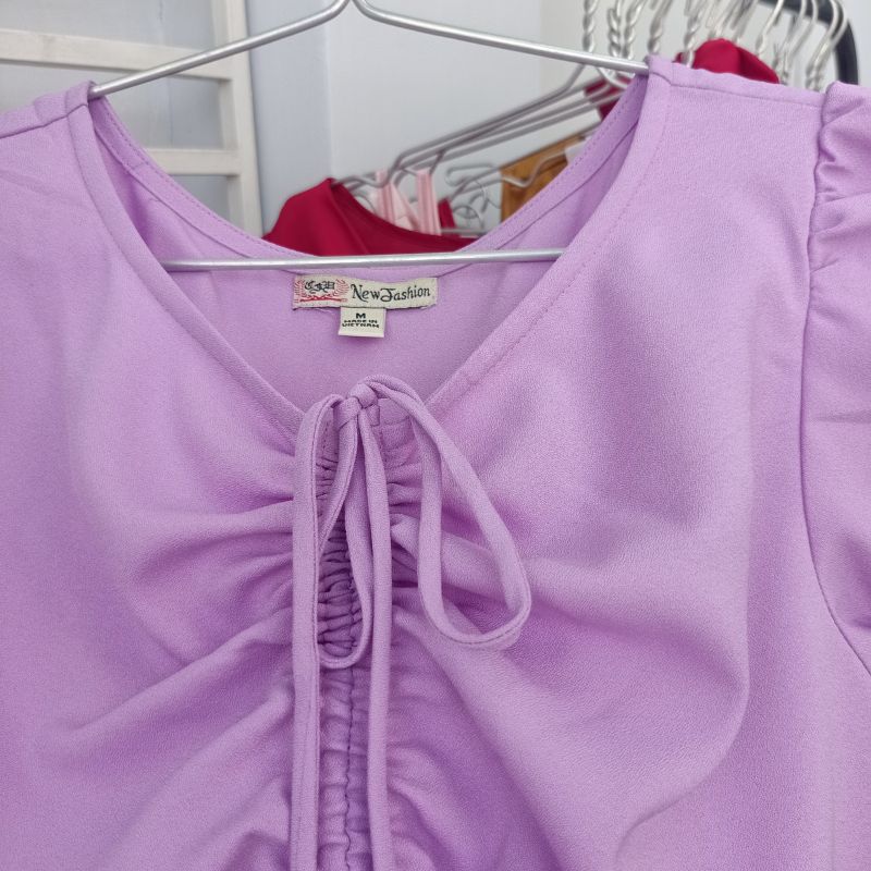 Áo croptop buộc nơ xinh xắn Đường may sắc nét, chỉnh chu từng chi tiết Kiểu dáng thời trang trẻ trung, hiện đại, phù hợp đi làm, đi chơi Chất liệu xô đũi co giãn