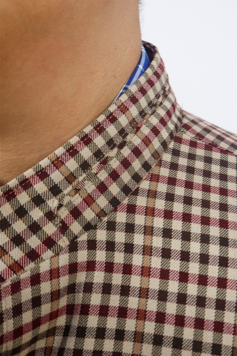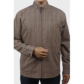 Áo Jacket nam 2 lớp cổ trụ Novelty Casual xanh caro nhỏ màu nâu NJKMCNMT3B2305242