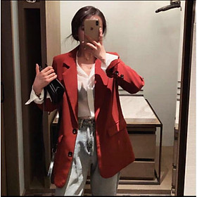 Áo khoác blazer nữ dáng dài đẹp màu đỏ trẻ trung phong cách Hàn Quốc From KHÀN BLAZER | 0899.300.773