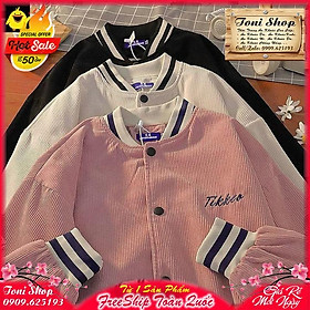 Áo khoác nữ form rộng - Áo khoác nhung gân thêu chữ phối 4 túi, 2 lớp #shorts