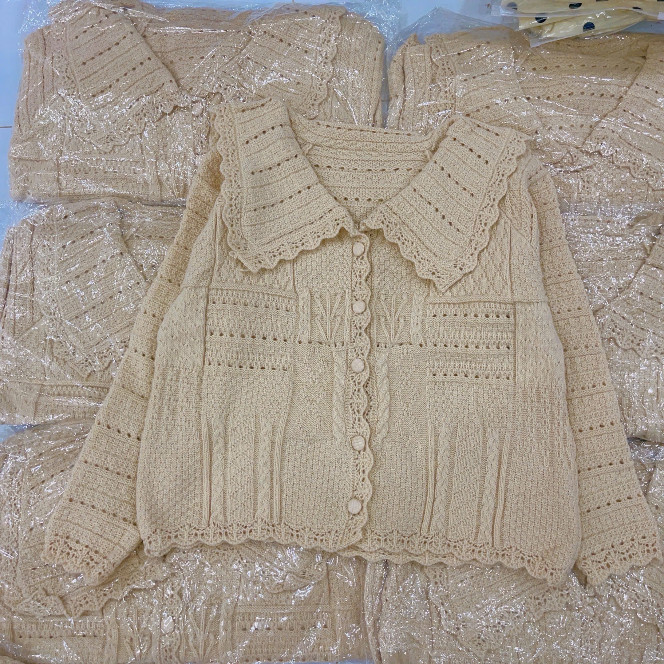 Áo Khoác Len Kiểu Dệt Kim Cổ Bẻ Tiểu Thư Tay Dài Dáng Lửng Phối Họa Tiết Freesize cho nàng ạ Mang tiểu thư xinh sang lắm ạ Sản phẩm này là tài sản cá