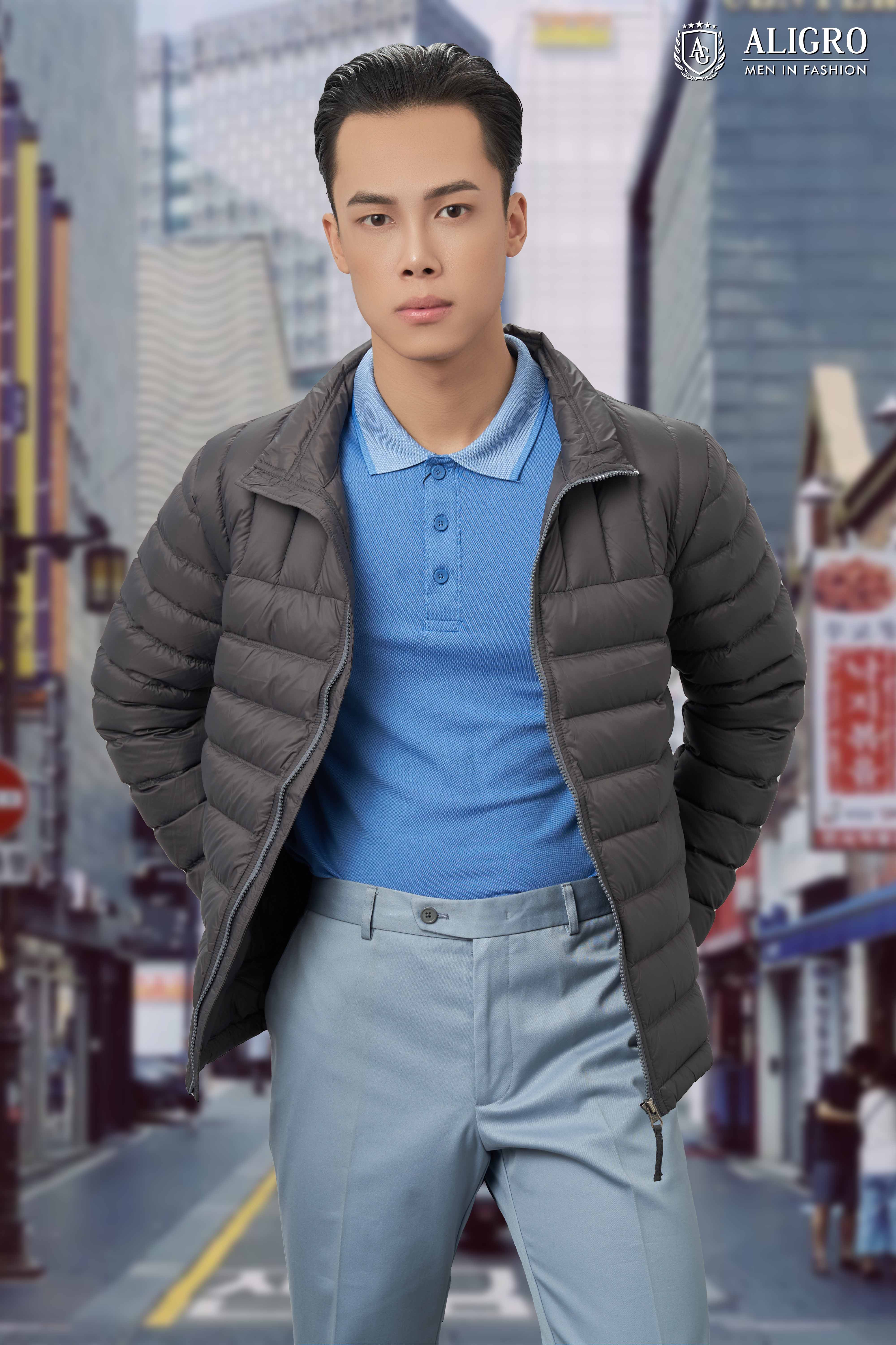 ✨Áo khoác lông vũ màu xám chất liệu cao cấp mềm mịn chống thấm nước chống bám bẩn siêu nhẹ giữ nhiệt ALIGRO ALGALV.22