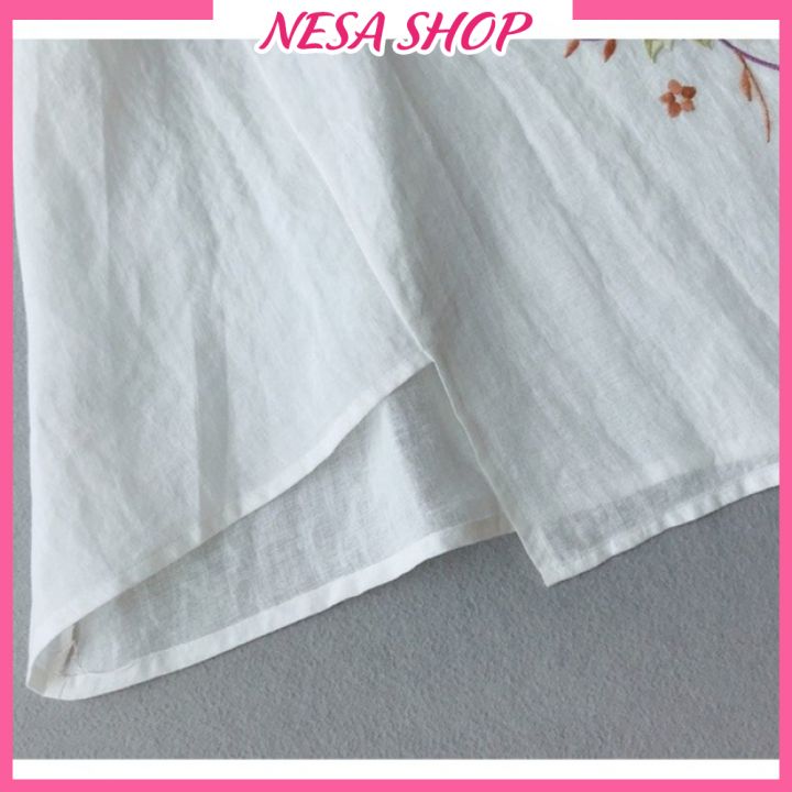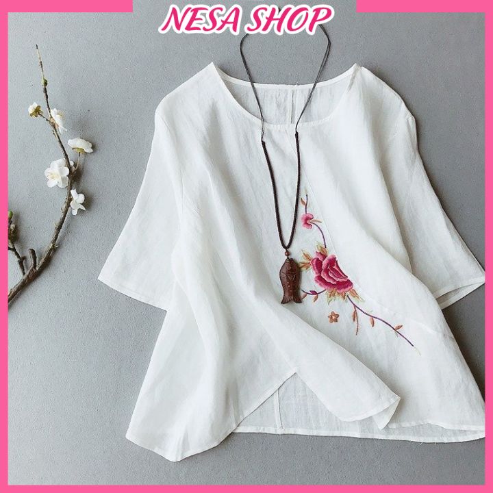✨Áo kiểu nữ cổ tròn tay lỡ form rộng thoải mái, chất liệu Đũi cao cấp mềm mịn, mát, hoạ tiết Thêu tỉ mỉ NeSa Shop AKH.57