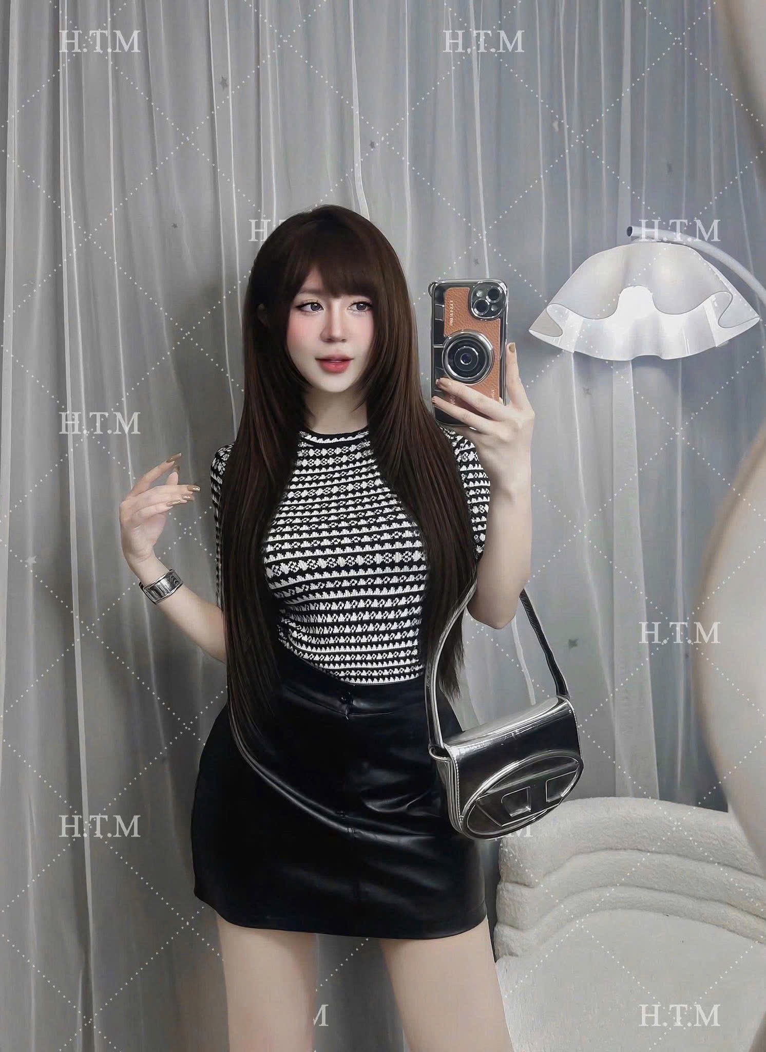 Chất liệu len gân co giãn, không bai, không xù Freesize chị em mặc thoải mái từ 40Kg đến 57kg Dài: 49 cm, Ngực/ Eo: 64 cm, Dài Tay: 26cm Thiết kế cut out phần