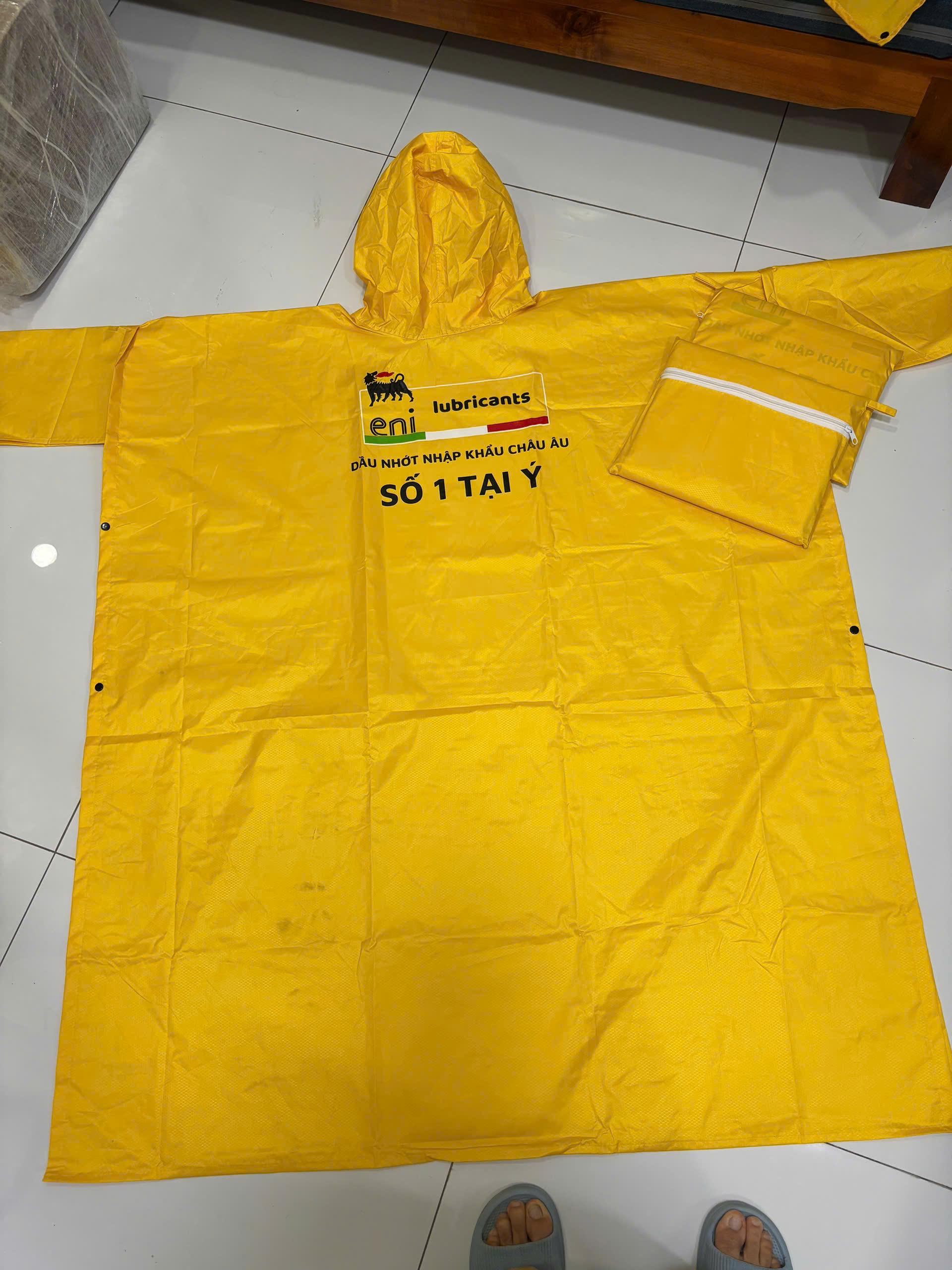 ÁO MƯA ENI CAO CẤP – CHỐNG THẤM TUYỆT ĐỐI, ĐỒNG HÀNH MỌI HÀNH TRÌNH Áo mưa Eni cao cấp là sản phẩm độc quyền đến từ thương hiệu dầu nhớt Eni – tập đoàn năng lượng hàng đầu nước Ý. Không chỉ nổi bật với thiết kế mạnh mẽ mang phong cách châu Âu, áo mưa Eni còn chinh phục người dùng bởi chất lượng vượt trội, đáp ứng hoàn hảo nhu cầu sử dụng trong điều kiện thời tiết mưa ẩm tại Việt Nam.   Đặc điểm nổi bật: Chất liệu chống thấm cao cấp: Sử dụng vải dù đặc biệt có khả năng chống nước tuyệt đối, nhanh khô và không bị bết dính sau thời gian dài sử dụng. Siêu nhẹ – dễ gấp gọn: Áo mưa Eni được thiết kế tối ưu trọng lượng, tiện lợi mang theo trong cốp xe hoặc balo. Độ bền cao – đường may chắc chắn: Các đường may được ép dán tỉ mỉ, giúp tăng độ bền và ngăn nước thấm qua khe chỉ. Kiểu dáng thể thao – unisex: Phù hợp cho cả nam và nữ, dễ dàng sử dụng trong nhiều hoàn cảnh – từ đi làm, đi chơi đến di chuyển đường dài. Thiết kế nổi bật với logo Eni: Tạo điểm nhấn phong cách, phù hợp với biker hoặc người yêu thích thương hiệu Eni. Ứng dụng: Dành cho người đi xe máy, phượt thủ, kỹ thuật viên, khách hàng sử dụng dịch vụ bảo dưỡng… Có thể dùng làm quà tặng tri ân trong các chương trình chăm sóc khách hàng, ưu đãi khi mua sản phẩm Eni.