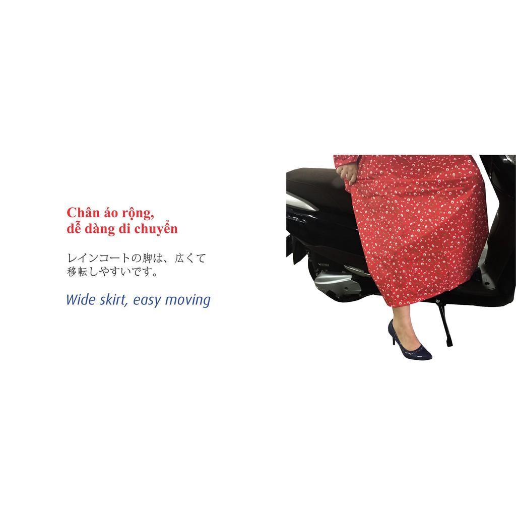 [Cao cấp] Áo mưa Rando Poncho Colosur “Che chở toàn diện” APNM-43 Rando  xin giới thiệu sản phẩm Áo mưa Rando Poncho Colosur “Che chở toàn diện” APNM-43 Áo đi mưa một người với thiết kế liền 2 bên hông giúp người di chuyển trong mưa được che kín toàn thân. Mặt sau lưng áo kết hợp viền phản quang cánh én giúp tăng độ an toàn khi lưu thông vào buổi tối. Chất liệu Nylon/PVC cao cấp, không co dãn, không thấm ướt, cực bền khi đi mưa. Chất liệu Nylon/PVC được kiểm định không chứa độc tố Phthalate gây hại, thân thiện với môi trường, không gây hại cho da và không gây ung thư, an toàn cho người sử dụng. Sản phẩm với độ dày chất liệu 0.15mm bền bỉ, an toàn khi đi ngoài trời mưa lớn, độ trượt nước cao, nhanh khô Phản quang cánh én, an toàn khi di chuyển trong đêm. Cổ áo tích hợp tăng đơ phù hợp mọi kích cỡ đầu Tà áo liền hai bên hông che mưa toàn diện Chân áo rộng, dễ dàng di chuyển Túi xuyên tiện lợi, nền vải hoa văn bền đẹp, trang nhã, không thấm nước Có các màu: Xanh đậm họa tiết bông/ Đỏ họa tiết bông *Giới thiệu thương hiệu: