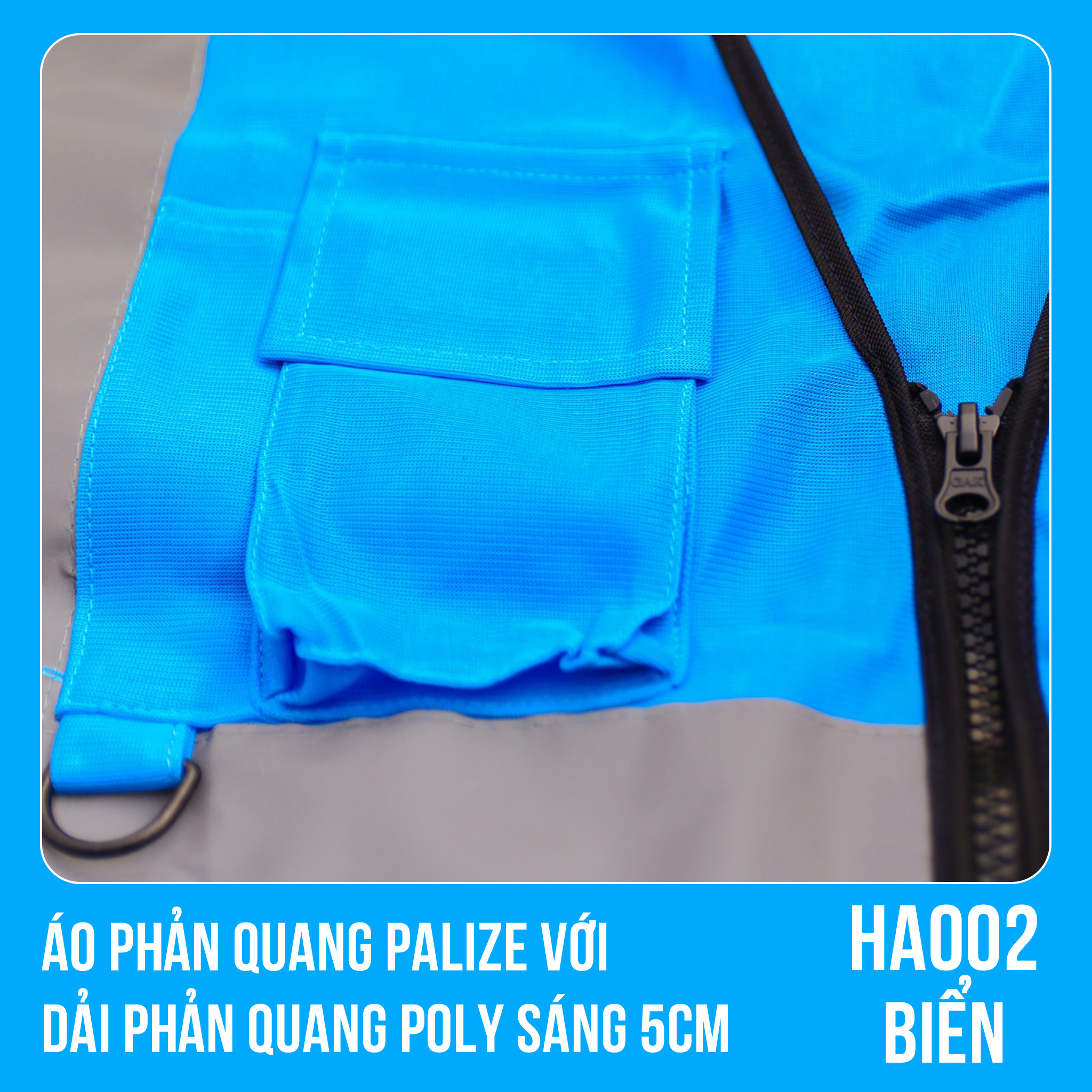✨Áo phản quang Palize với dải Phản quang Poly sáng 5cm màu BIỂN - Mã HA002