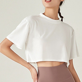 Mua tại TiktokÁo phông crop top dáng ngắn lửng màu trắng siêu mát cho nữ