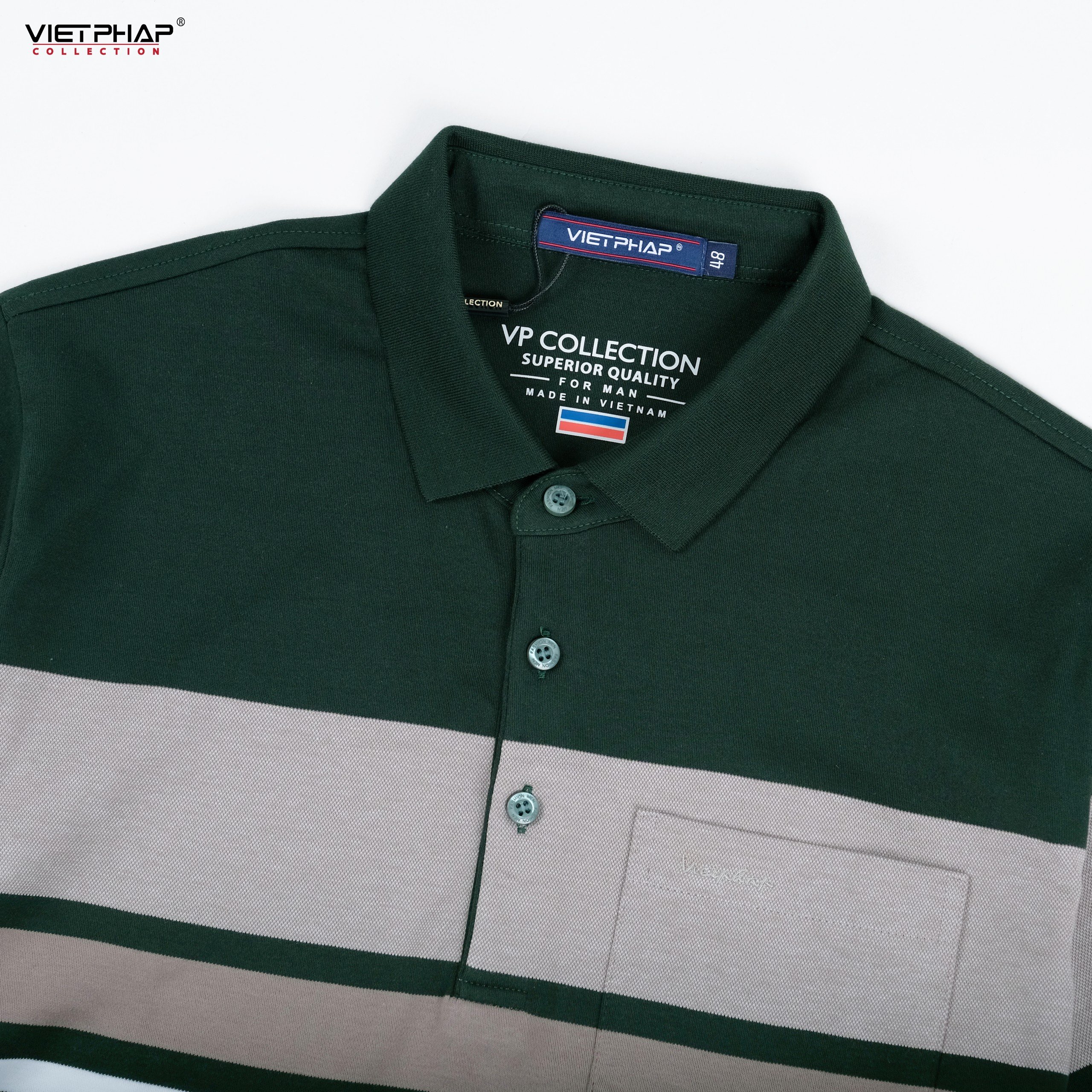 Áo Thun Polo VIỆT PHÁP cao cấp mềm mại thoáng khí - Chất liệu: 98% Cotton, 2% Spandex - Size: Xanh lá - Xanh - Xám - Trắng - Màu: 48 - 50 - 52 - 54 - 56 -