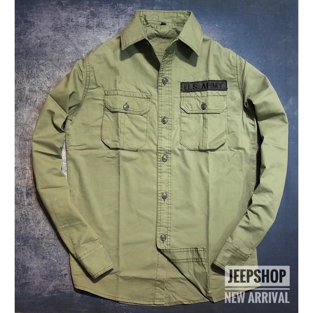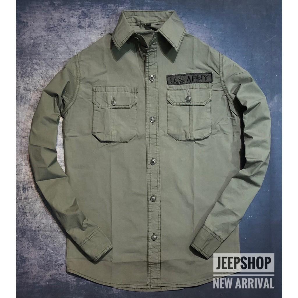 ✨Áo sơ mi dài tay US.Army_kaki_túi hộp
