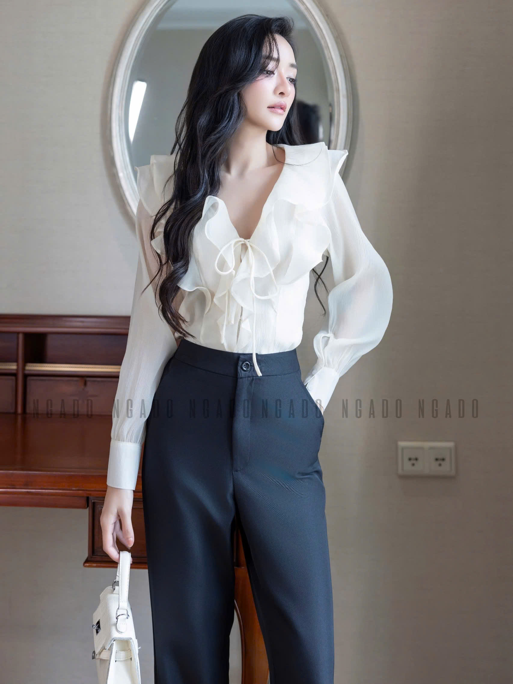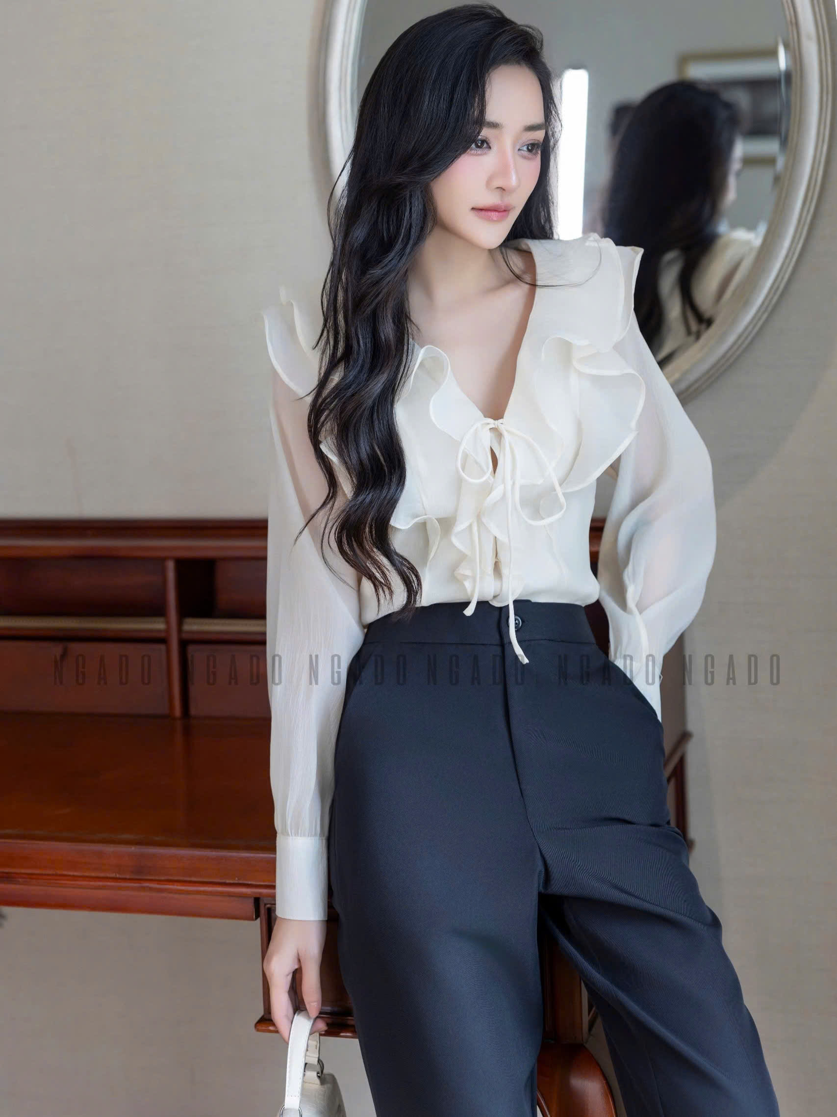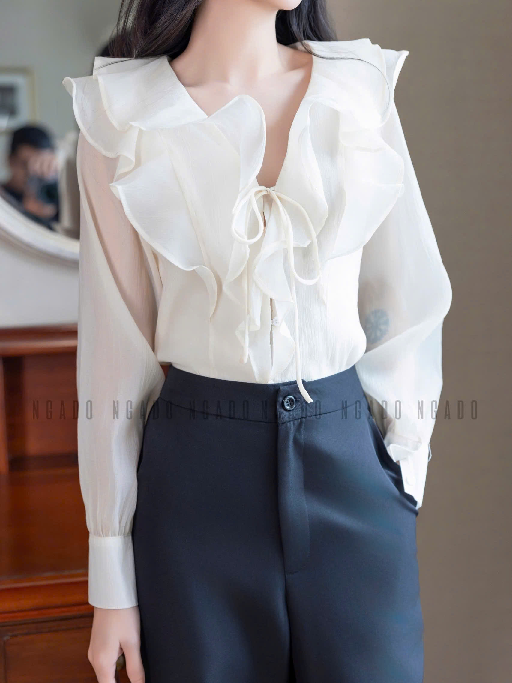 ✨Áo sơ mi kem dài tay NGADO , áo voan tơ , áo công sở