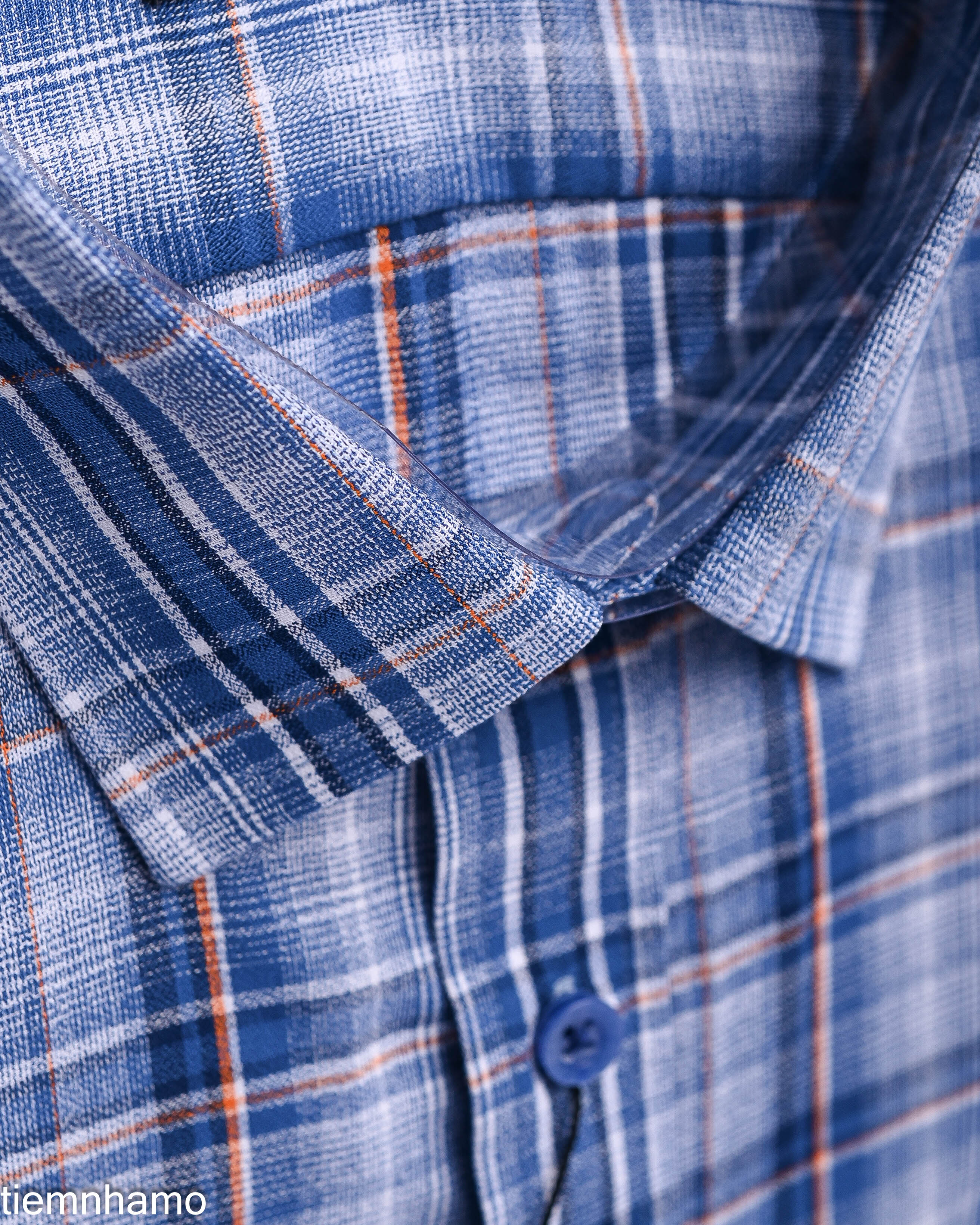 Sơ mi ngắn tay xanh nhạt caro to GD612