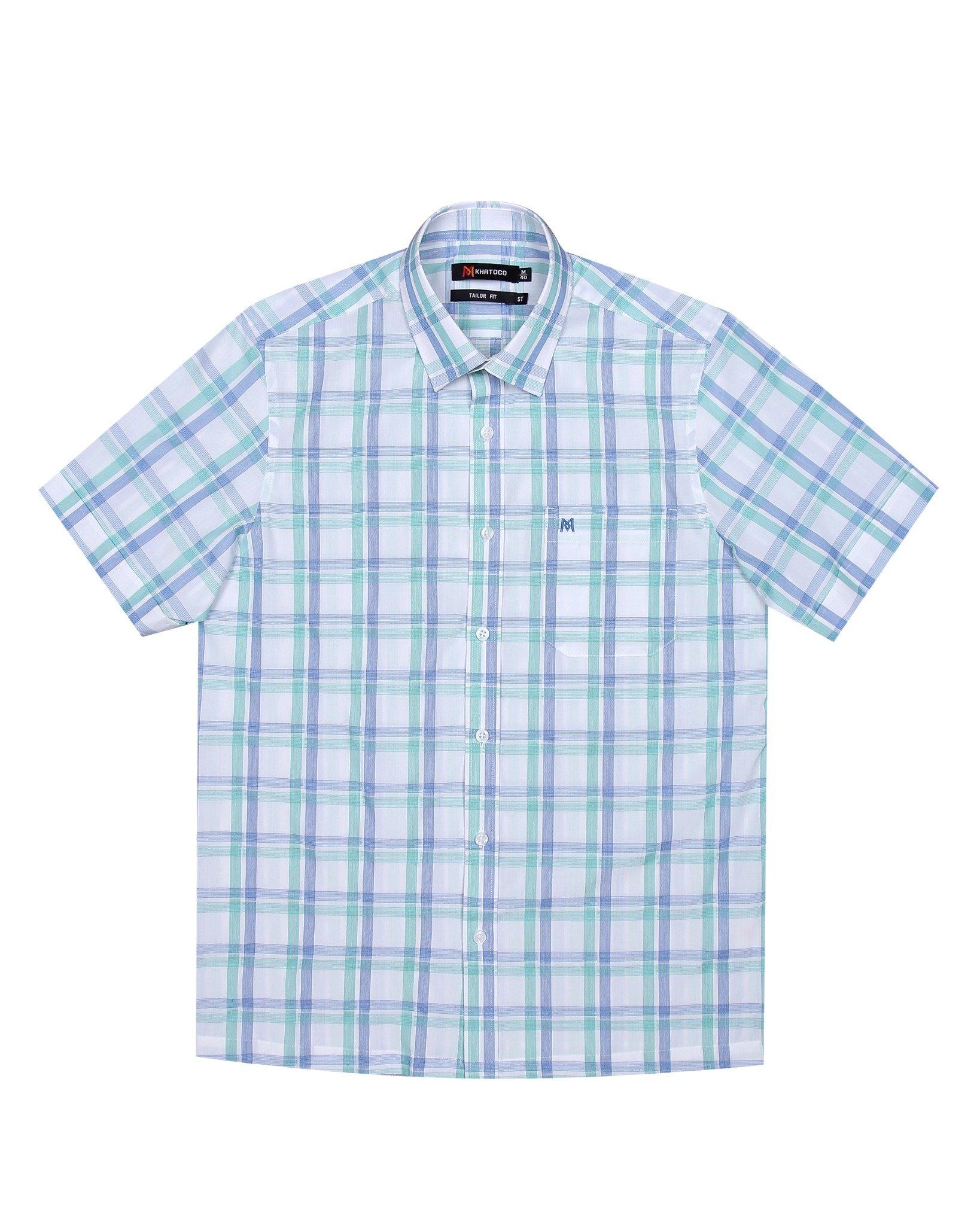 ✨Áo sơ mi nam KHATOCO ngắn tay kẻ caro A1MN438T2-CNCR223-2411-N
