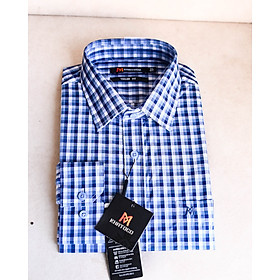 Áo sơ mi nam trung niên, Áo sơ mi nam công sở Anton, Áo sơ mi nam dài tay họa tiết caro xanh Vải cotton thoáng mát, thấm hút tốt, mềm mịn không xù Qúy