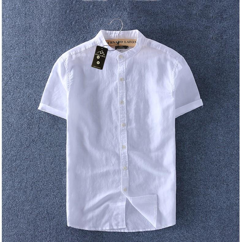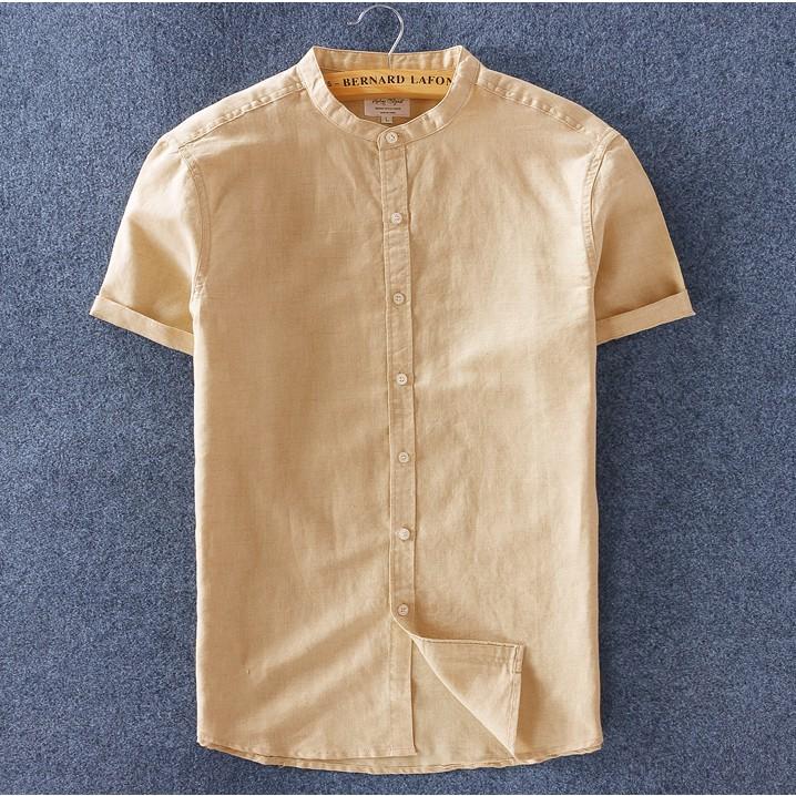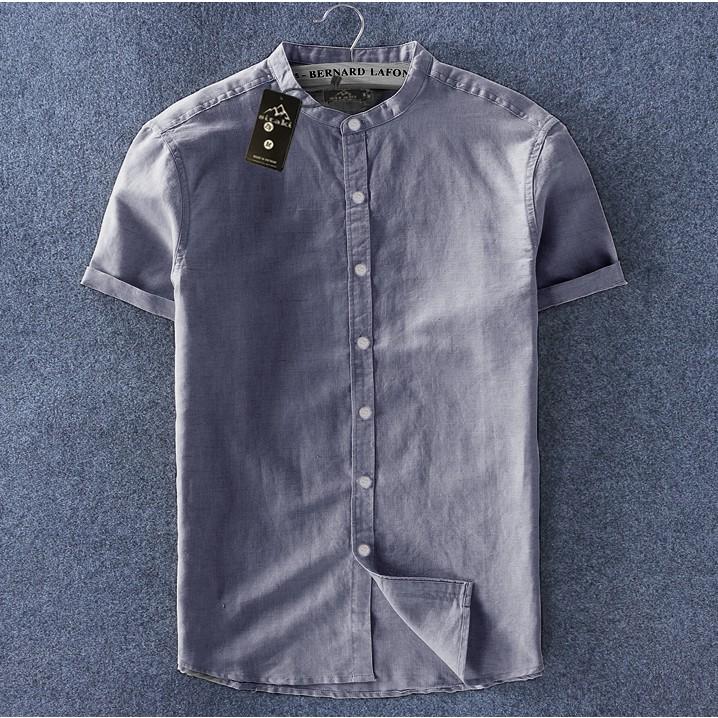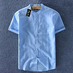 ÁO SƠ MI NAM NGẮN TAY CỔ TRỤ THỜI TRANG -Mẫu sơ mi nam ngắn tay cổ trụ vải xô thái cao cấp -Thiết kế kiểu cổ trụ mới mẻ và sang trọng -Size: M,